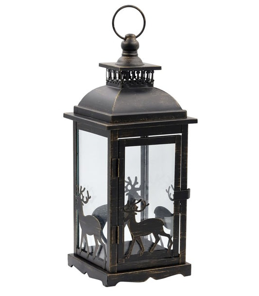 Laterne aus Metall schwarz mit Hirsch Design 14 x 14 x 35cm