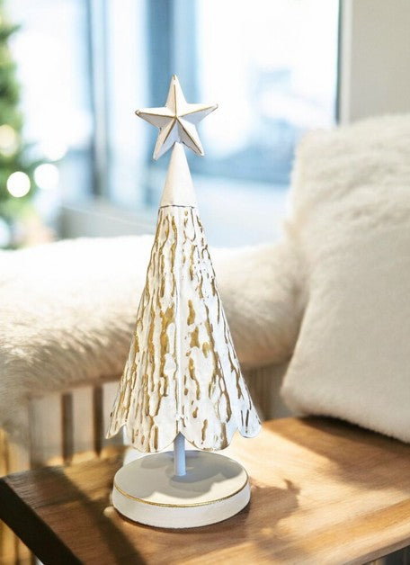 Deko Tanne aus Metall altweiss gold mit Stern auf der Spitze