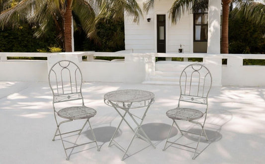 Bistro Set aus Metall Gartentisch und 2 Stühle Farbe: Vintage weiss
