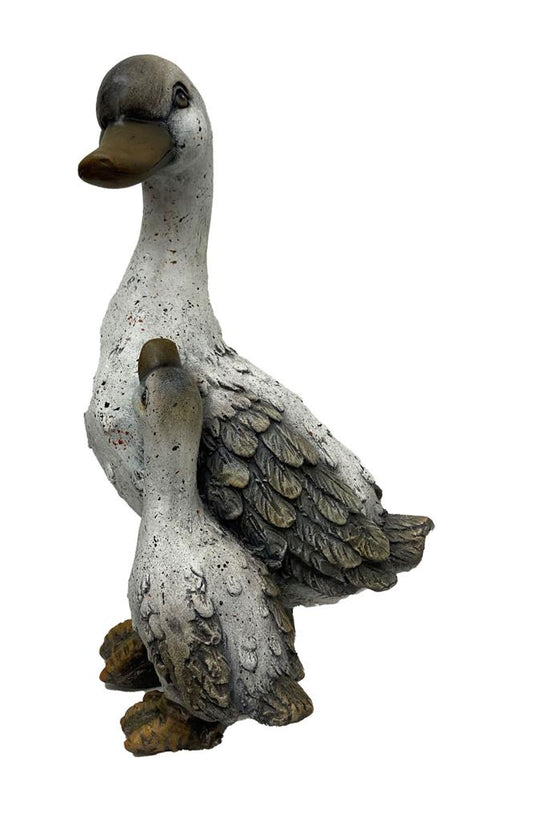 Deko Figur Ente mit Jungtier grau aus Terracotta H40cm