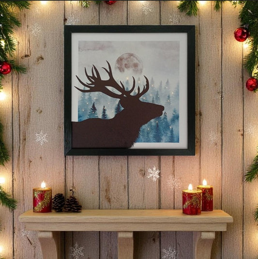 LED Bild aus Canvas mit Holzrahmen Motiv: Hirschkopf mit 30 Fibre Optic LED