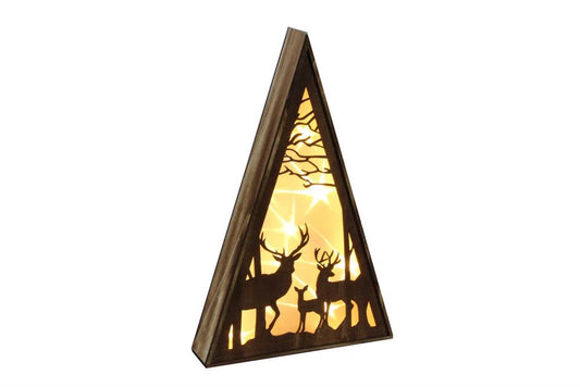 LED Diorama Bild Holz Hirsche/Äste/Sternen 30 LED - H:40.5cm B:27cm T:9.2cm