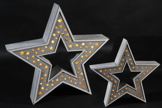 LED Holz Stern mit Stern Design 36 LED, D:47cm Farbe: Grau/Weiss Washed