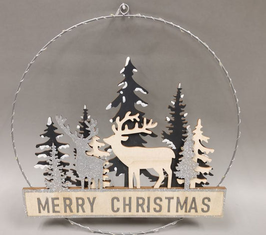 LED Hänger mit Rahmen aus Metall 30 LED D:40cm Rentier im Wald Warm weisses Licht