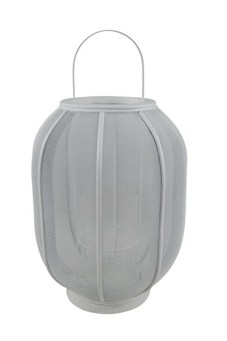 Laterne Metall /Holz weiss konisch mit Griff und Glaseinsatz H: 50cm D:28.5cm