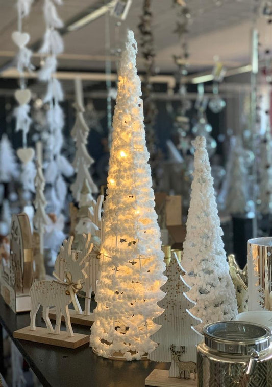 LED Baum aus Metall mit 20 LED mit Watte beflockt Farbe: Weiss D:15cm H:60cm