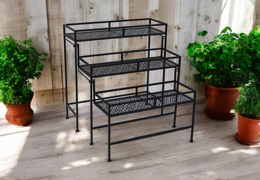 Pflanzenständer aus Metall 3 Etagen Farbe schwarz