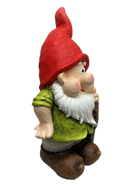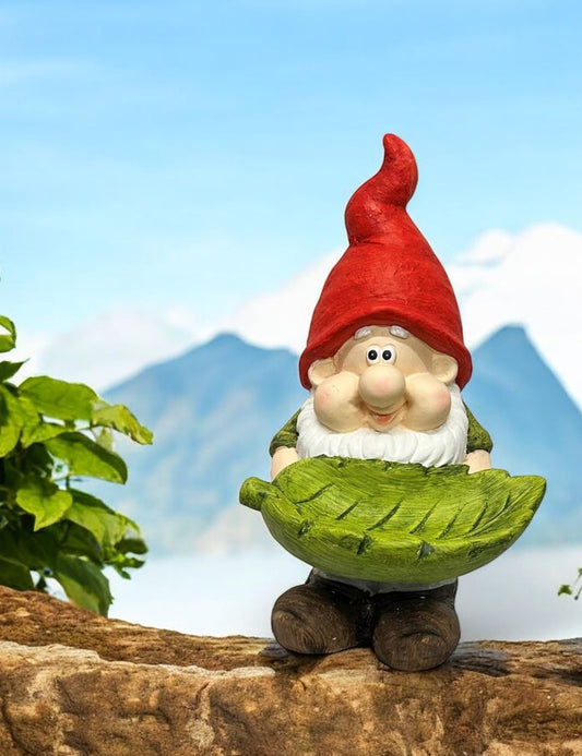 Gartenzwerg mit Blatt in den Händen rote Mütze 25 x26 x42cm