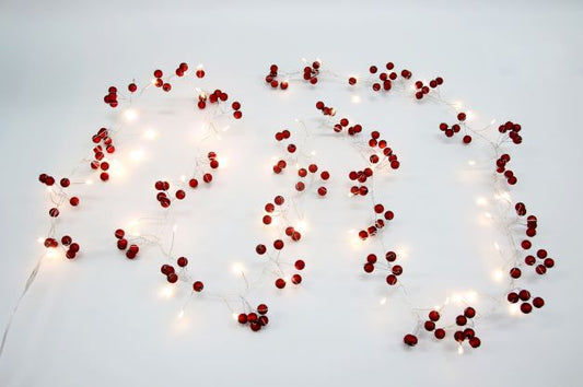 LED Lichterkette Cluster mit roten Kügelchen 72 warm weisse LED Länge 180cm