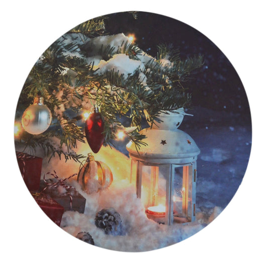 LED Bild rund aus Canvas 5 LED Motiv: Laterne XMAS D:40cm T:1.8cm