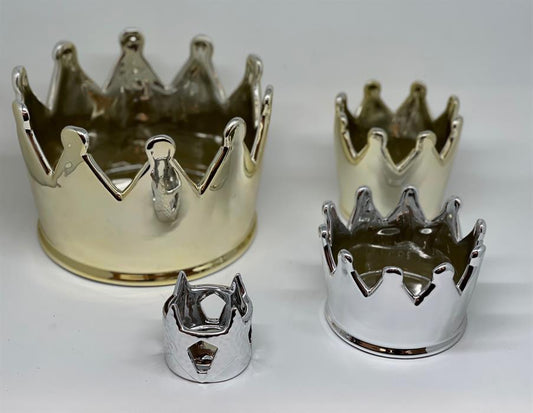 Kerzenhalter Krone XXL aus Keramik, Farbe: Gold, D:18.7cm H:12cm