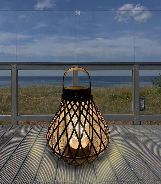 Laterne aus Bambus rund mit Griff und Glaseinsatz