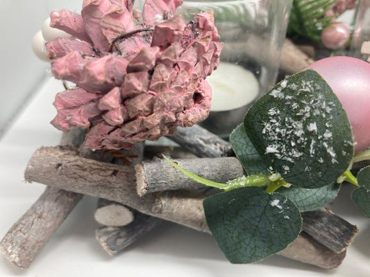 Kerzenhalter Xmas aus Holz mit Dekorationselementen für 4 Kerzen oder Teelichter