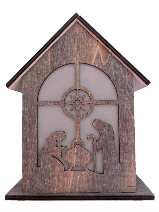 LED XMAS Haus mit Krippenszene mit Hologrammfolie und 10 LED Farbe: Braun