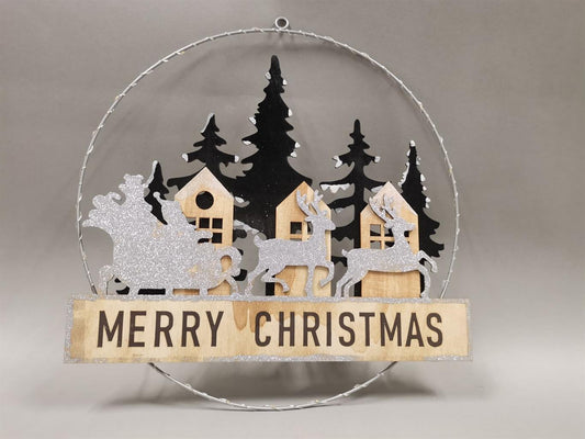 LED Hänger mit Rahmen aus Metall 30 LED mit D:40cm XMAS Dorf Warm weisses Licht