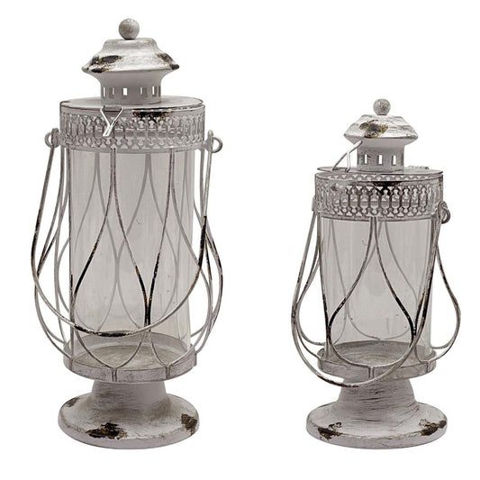 Laterne aus Metall in Altgrau mit Glaseinsatz
