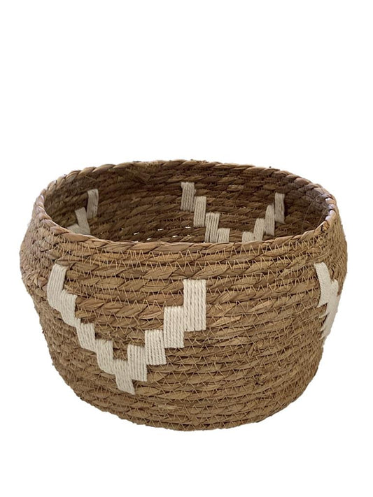 Korb aus Gras 2er Set mit Baumwollseil verziert