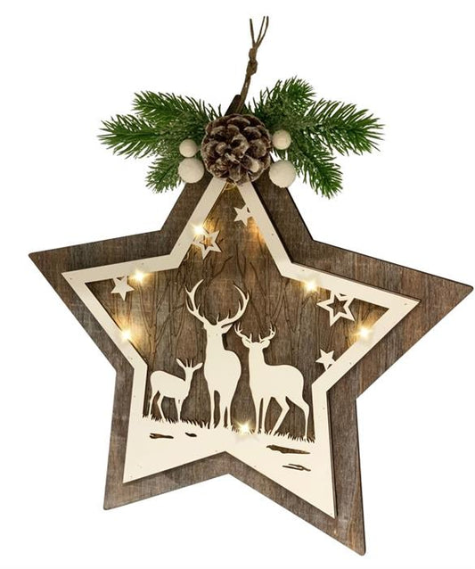LED Deko Hänger Stern aus Holz Design: Hirsch Farbe: Braun L6cm x B34cm x H33cm