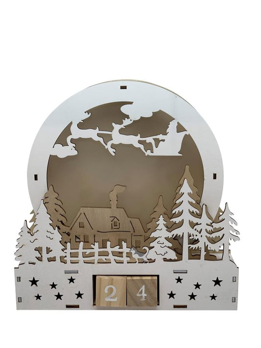 LED Holz Kalender Tischdeko mit Zahlenwürfel mit 8 LED Farbe:Weiss