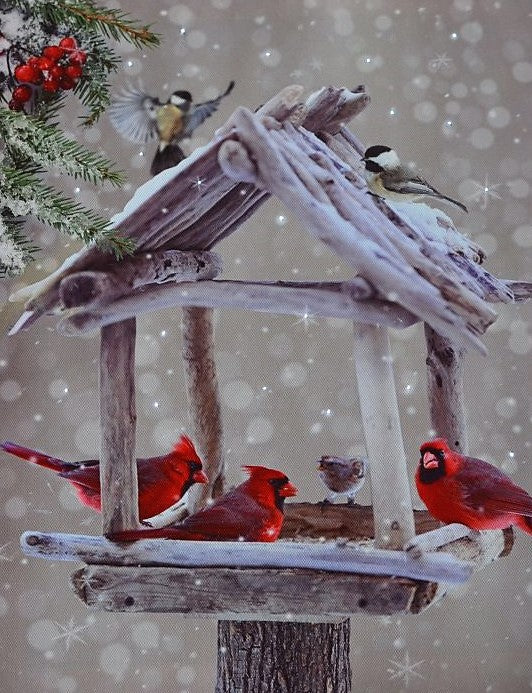 LED Bild aus Canvas mit 20 fibre Optics LED Motiv: Vogelhaus