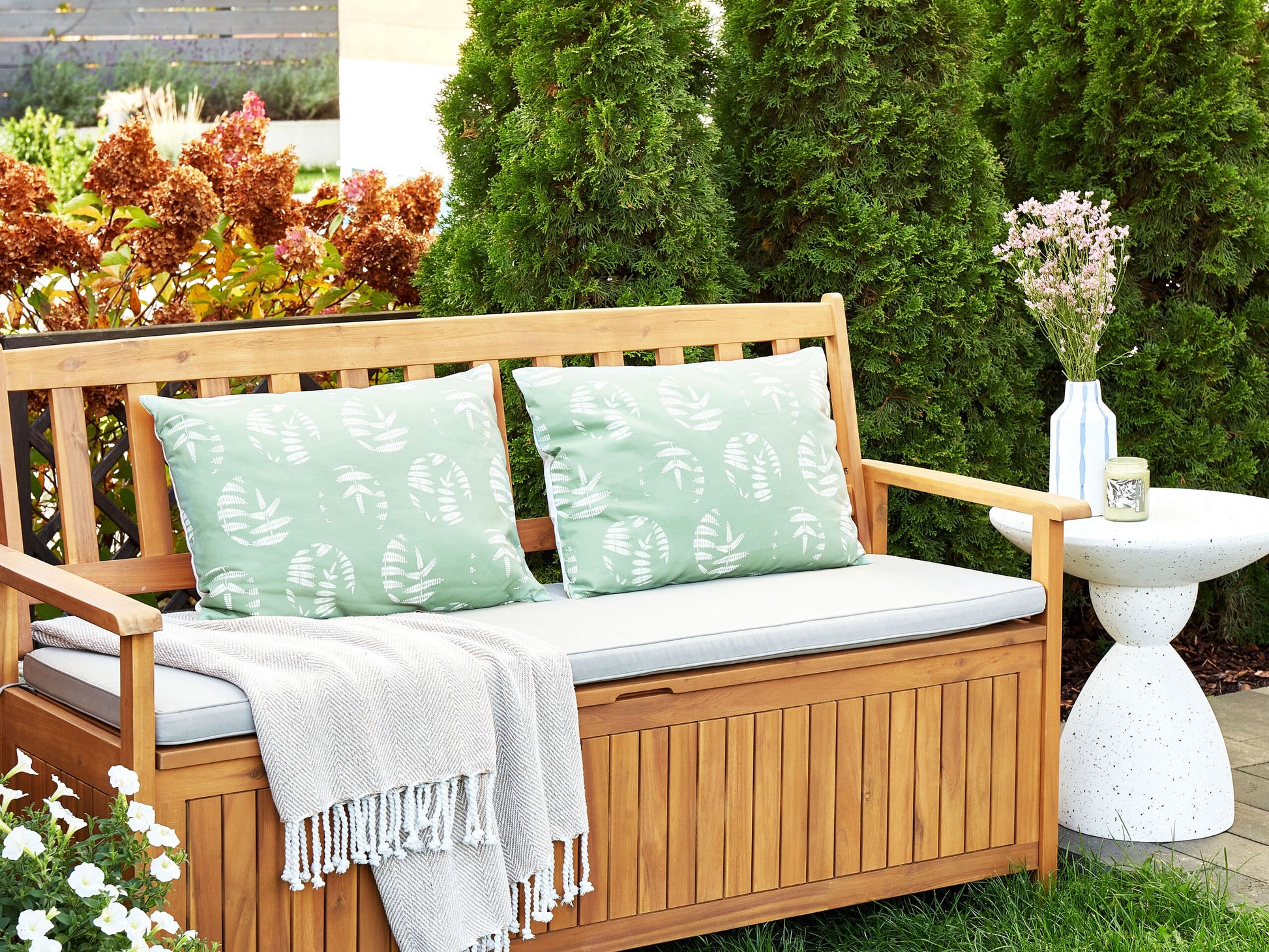 Mit diesem Kissen-Set holen Sie sich die entspannende Atmosphäre der Natur in Ihre Outdoor-Oase. Die Kissen mit zartem Blattmuster in Olivgrün und Weiss vereinen Stil und Funktionalität dank der wasserabweisenden Bezüge. Verleihen Sie Ihrem Garten im Handumdrehen mehr Komfort und Ästhetik. Material: Polyester. Material Zusammensetzung: 100% Polyester Montage: Benötigt keine Montage Das Angebot beinhaltet: 2 x Gartenkissen Höhe: 10 zusätzliche Information: Das Kissen ist vakuumverpackt. Nehmen Sie Ihr Kissen aus der Verpackung heraus und lassen Sie es 24 Stunden lang liegen, bis es seine volle Dichte erreicht. Gestalten: Rechteckig Breite: 40 Tiefe: 60 Art: Gartenkissen 2er Set Stil: Modern Allgemeine Farbe: Grün Schatten: Olivgrün Muster: Pflanzenmuster Hauptmaterial: Polyester Füllmaterial: Polyester