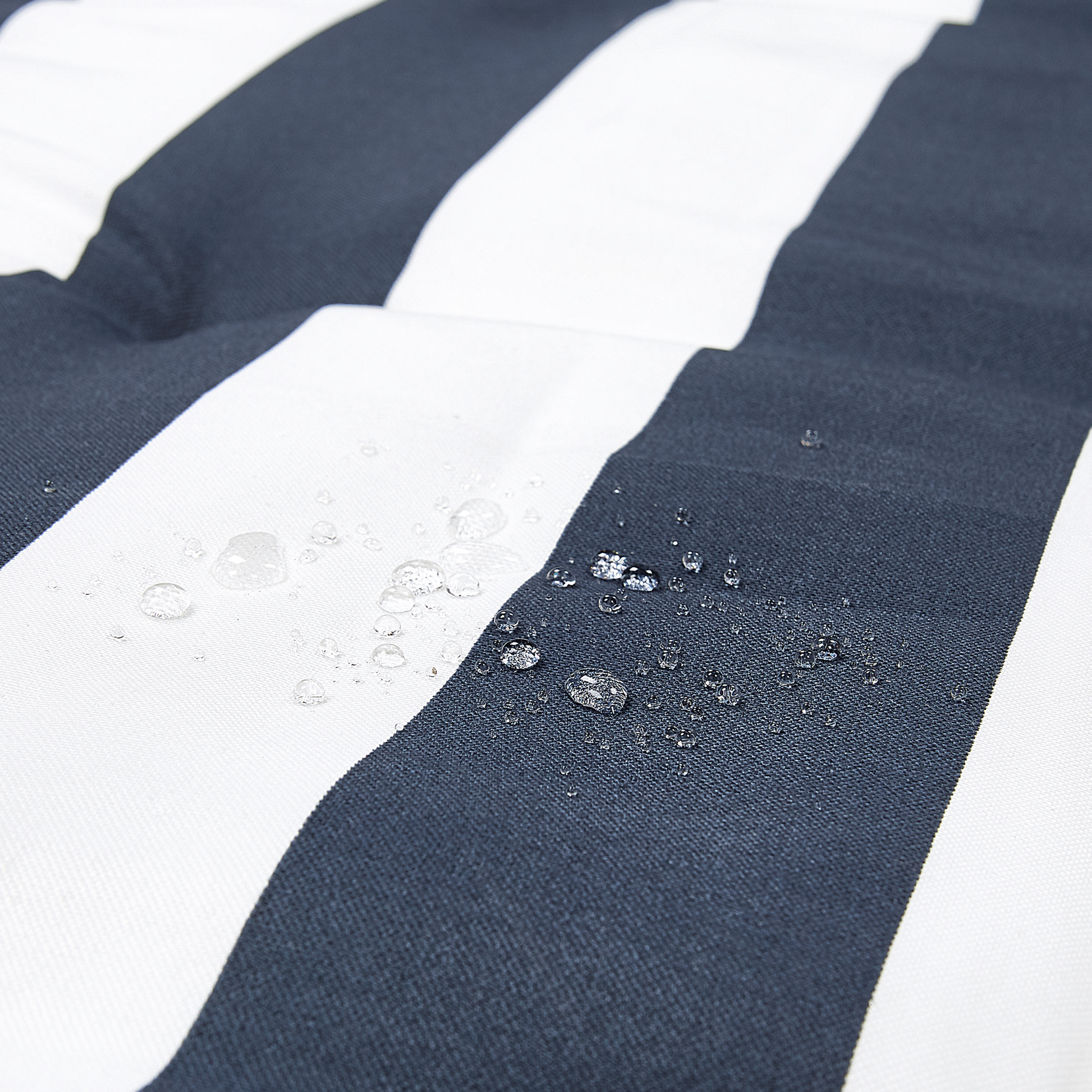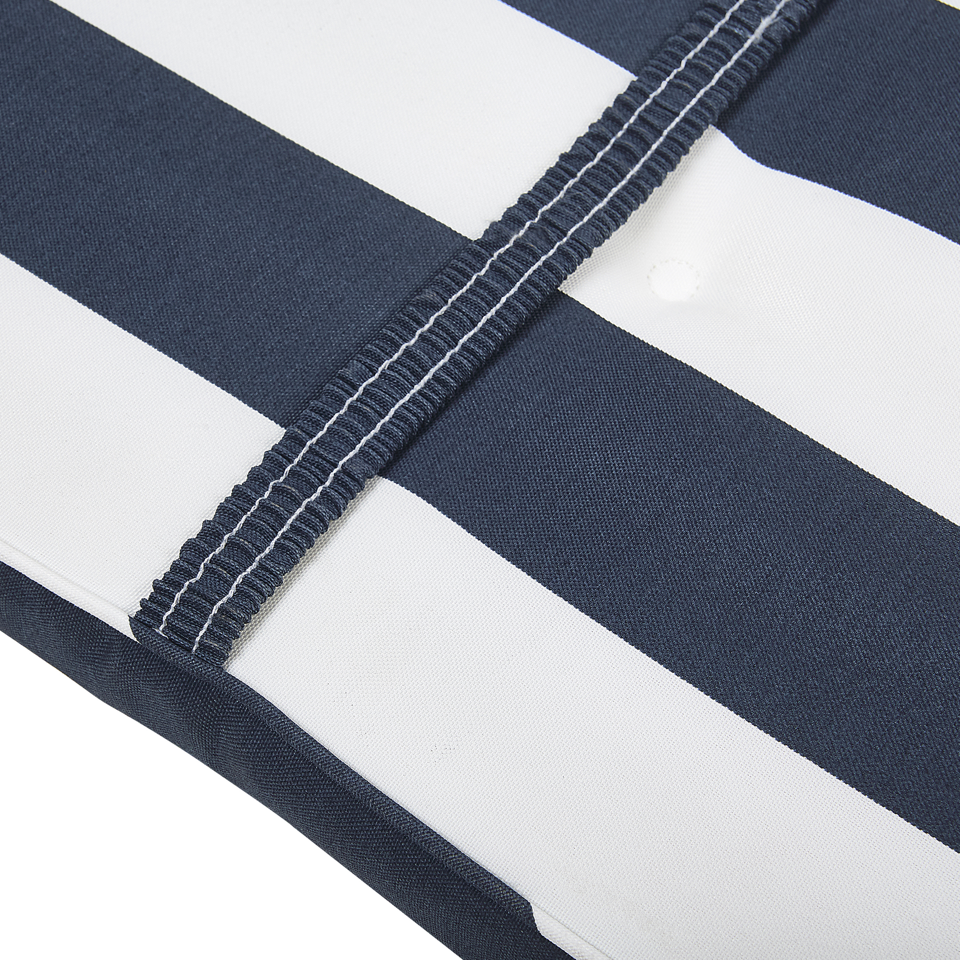 Gartenliege Akazienholz hellbraun Auflage marineblau gestreift rollbar CESANA