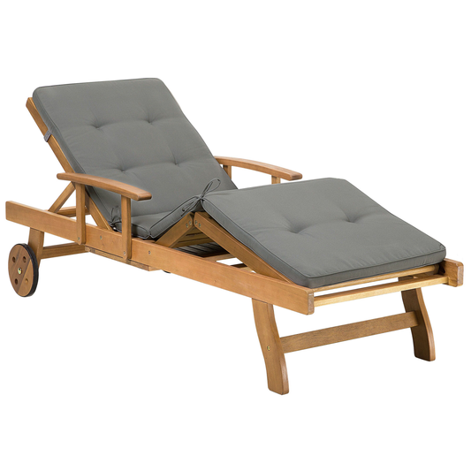 Gartenliege Akazienholz hellbraun Auflage graphitgrau rollbar JAVA