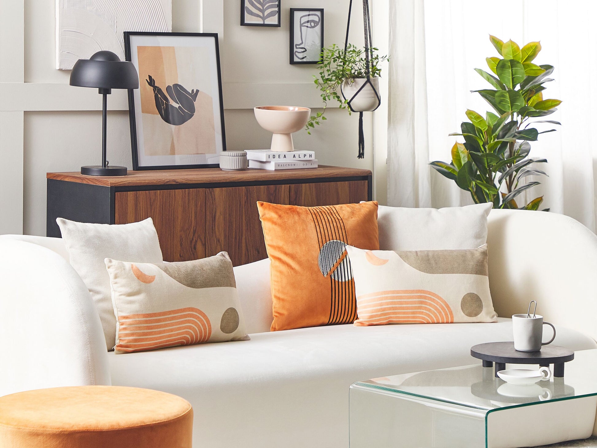 Machen Sie das Beste aus Ihrem Wohnbereich und dekorieren Sie ihn mit Stil. Dieses Set von Zierkissen mit dezentem Muster sieht auf einem Sofa in jeder Farbe gut aus. Legen Sie sie neben andere Kissen, um Ihre eigene Komposition zu schaffen, die das gesamte Interieur aufpeppen wird. Die Kissen sind mit integrierten Reissverschlüssen ausgestattet, die ihre Pflege sehr einfach machen. Material: Polyester. Material Zusammensetzung: 50 % Baumwolle, 50 % Polyester Montage: Benötigt keine Montage Das Angebot beinhaltet: 2 x Zierkissen Höhe: 10 zusätzliche Information: Das Kissen ist vakuumverpackt. Nehmen Sie Ihr Kissen aus der Verpackung heraus und lassen Sie es 24 Stunden lang liegen, bis es seine volle Dichte erreicht. Gestalten: Rechteckig Breite: 30 Tiefe: 50 Art: Dekokissen 2er Set Stil: Modern Allgemeine Farbe: Beige Muster: Abstraktes Muster Hauptmaterial: Polyester Füllmaterial: Polyester