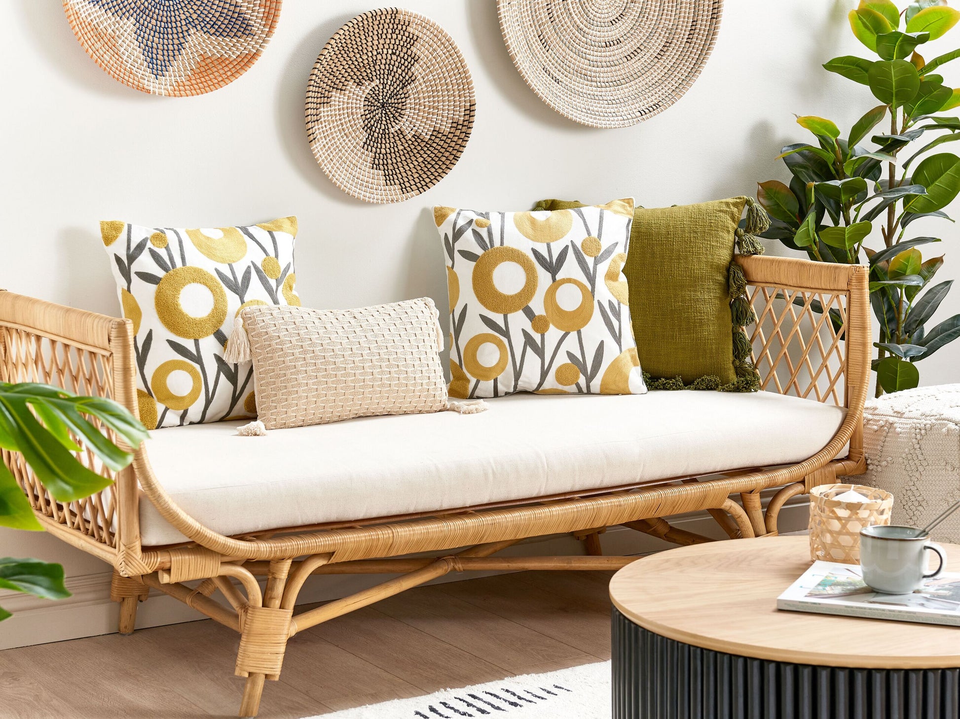 Dekorieren Sie Ihr Zuhause mit diesem auffälligen Kissenset mit einem stilvollen, gestickten Pflanzenmotiv. Dank ihrer Farbgebung passen die Kissen perfekt zu Wohn- und Schlafzimmern in modernen und klassischen Designs. Die abnehmbaren Bezüge aus angenehmer Baumwolle mit weicher Füllung sind nicht nur bequem, sondern auch pflegeleicht, da sie von Hand gewaschen werden können. Material: Baumwolle. Material Zusammensetzung: 100% Baumwolle Montage: Benötigt keine Montage Das Angebot beinhaltet: 2 x Zierkissen Höhe: 10 zusätzliche Information: Das Kissen ist vakuumverpackt. Nehmen Sie Ihr Kissen aus der Verpackung heraus und lassen Sie es 24 Stunden lang liegen, bis es seine volle Dichte erreicht. Gestalten: Quadratisch Breite: 45 Tiefe: 45 Art: Dekokissen 2er Set Stil: Modern Allgemeine Farbe: Bunt Muster: Blumenmuster Hauptmaterial: Baumwolle Füllmaterial: Polyester