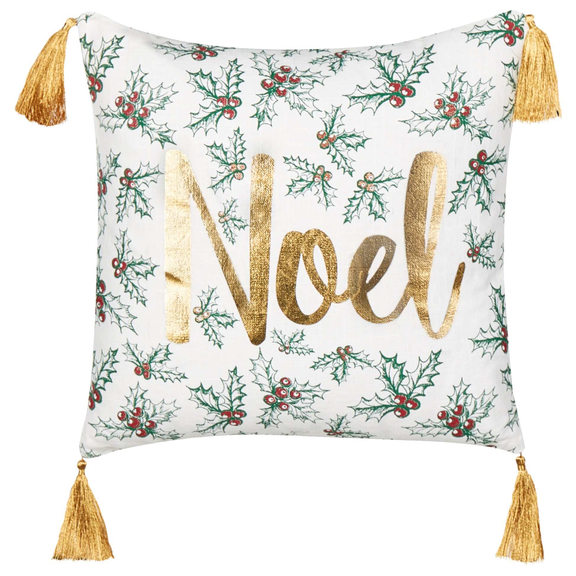 Die Kissenhüllen bestehen aus weichen Baumwollfasern und sind mit weihnachtlichen Motiven versehen. Zudem sind die Sofakissen mit einem weichen Füllmaterial aus Polyester und praktischen Reissverschlüssen ausgestattet. Die aufgedruckten Weihnachtsmuster werden durch dekorative Quasten und goldene Schriftzüge aus Druckfolie ergänzt, die für einen Metallic-Effect sorgen. Dank ihrer gemütlichen Optik sind diese Zierkissen eine ideale Ergänzung für jeden Weihnachtslook. Material: Baumwolle. Material Zusammensetzung: 100% Baumwolle Montage: Benötigt keine Montage Das Angebot beinhaltet: 2 x Zierkissen Höhe: 11 zusätzliche Information: Da jedes Produkt handgefertigt wird, kann es zu kleineren Abweichungen in der Farbe und der äusseren Struktur kommen. Diese Abweichungen stellen keinen Qualitätsmangel dar, sondern sind eine warentypische Eigenschaft. Gestalten: Quadratisch Breite: 45 Tiefe: 45 Art: Dekokissen 2er Set Stil: Modern Allgemeine Farbe: Weiss Schatten: Cremeweiss Muster: Weihnachtsmotiv Hauptmaterial: Baumwolle Füllmaterial: Polyester