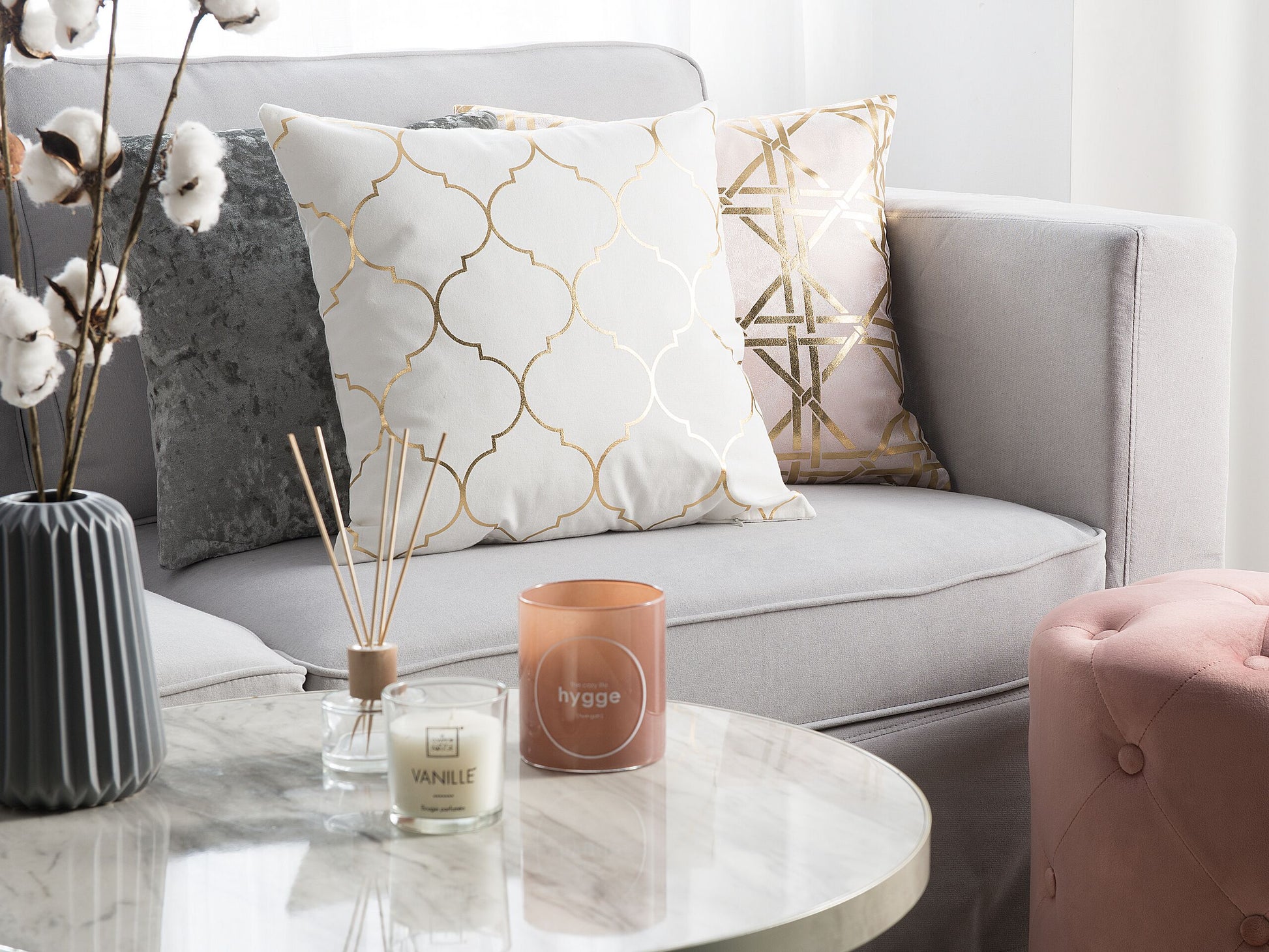 Beschreibung: Ein Stück Orient für Ihre Wohnung - dekorieren Sie Ihre Couch, den Sessel oder die Chaiselongue mit diesem Kissen im 2er Set in dezentem Weiss und Gold. Es wird vor allem mit anderen edlen Dekoartikeln und Accessoires harmonieren und dabei eine gemütliche Atmosphäre im Raum versprühen. Material: Baumwolle. Material Zusammensetzung: 100% Baumwolle Montage: Benötigt keine Montage Das Angebot beinhaltet: 2 x Zierkissen Höhe: 12 zusätzliche Information: Das Kissen ist vakuumverpackt. Nehmen Sie Ihr Kissen aus der Verpackung heraus und lassen Sie es 24 Stunden lang liegen, bis es seine volle Dichte erreicht. Gestalten: Quadratisch Breite: 45 Tiefe: 45 Art: Dekokissen 2er Set Stil: Modern Allgemeine Farbe: Weiss Schatten: Cremeweiss Muster: Marokkanisches Muster Hauptmaterial: Baumwolle Füllmaterial: Polyester