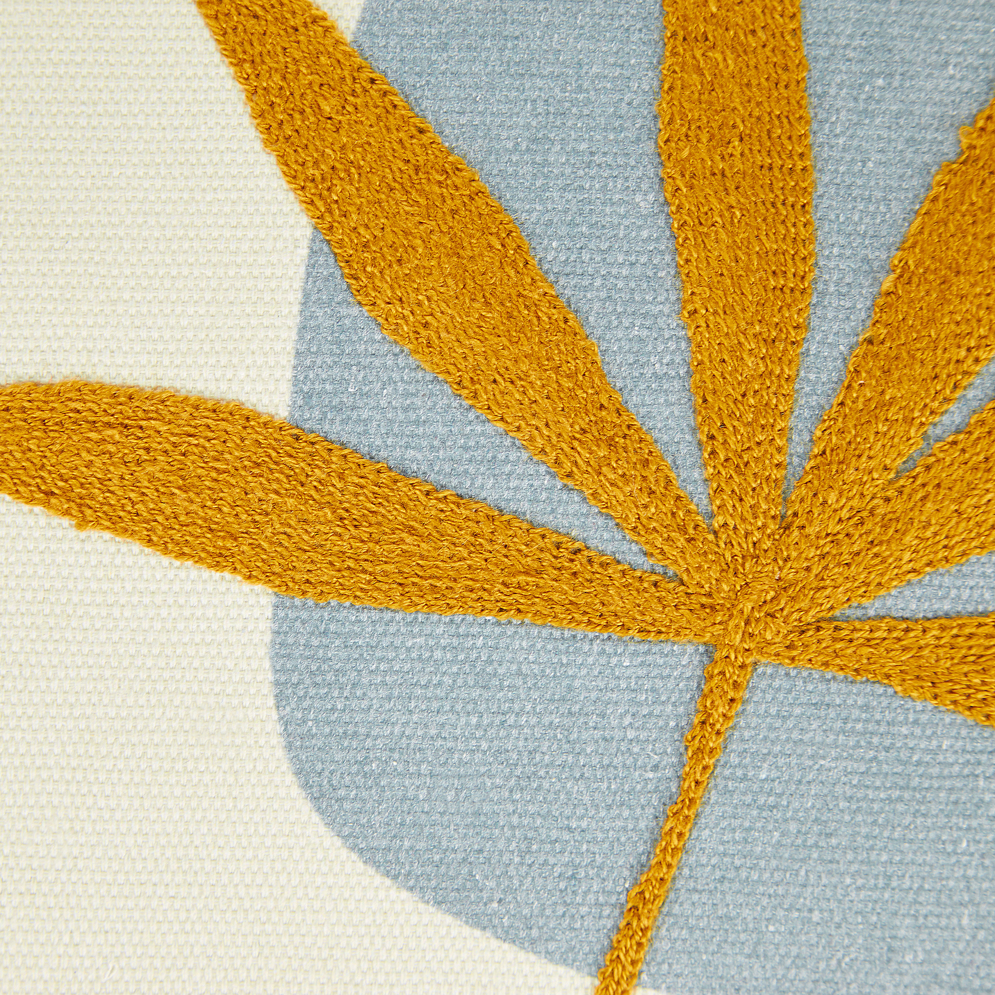 Das lässige Design mit dem aufgestickten Blatt auf der Vorderseite des Bezuges bringt Abwechslung in jeden Raum. Die strapazierfähigen Bezüge bestehen aus einem Polyester-Baumwoll-Gemisch und lassen sich dank eines praktischen Reissverschlusses leicht abnehmen sowie reinigen. Material: Polyester. Material Zusammensetzung: 50 % Baumwolle, 50 % Polyester Montage: Benötigt keine Montage Das Angebot beinhaltet: 2 x Zierkissen Höhe: 12 zusätzliche Information: Das Kissen ist vakuumverpackt. Nehmen Sie Ihr Kissen aus der Verpackung heraus und lassen Sie es 24 Stunden lang liegen, bis es seine volle Dichte erreicht. Gestalten: Quadratisch Breite: 45 Tiefe: 45 Art: Dekokissen 2er Set Stil: Retro Allgemeine Farbe: Beige Muster: Pflanzenmuster Hauptmaterial: Polyester Füllmaterial: Polyester