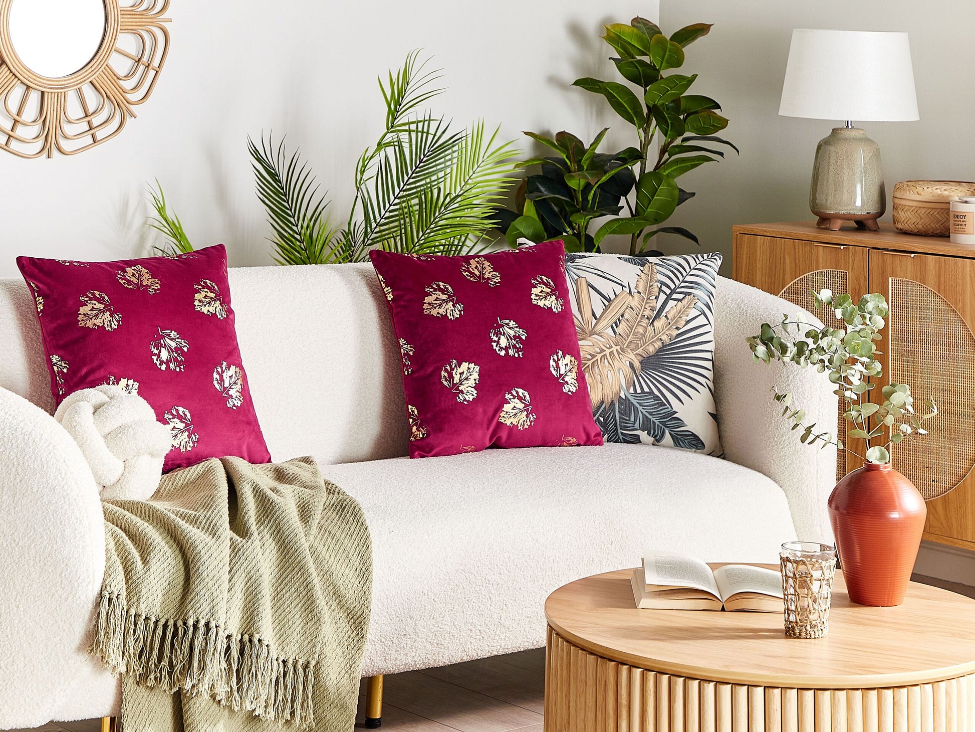 Dekokissen 2er Set GOLDENROD Samtstoff 45 x 45 cm Burgunderrot Pflanzenmuster