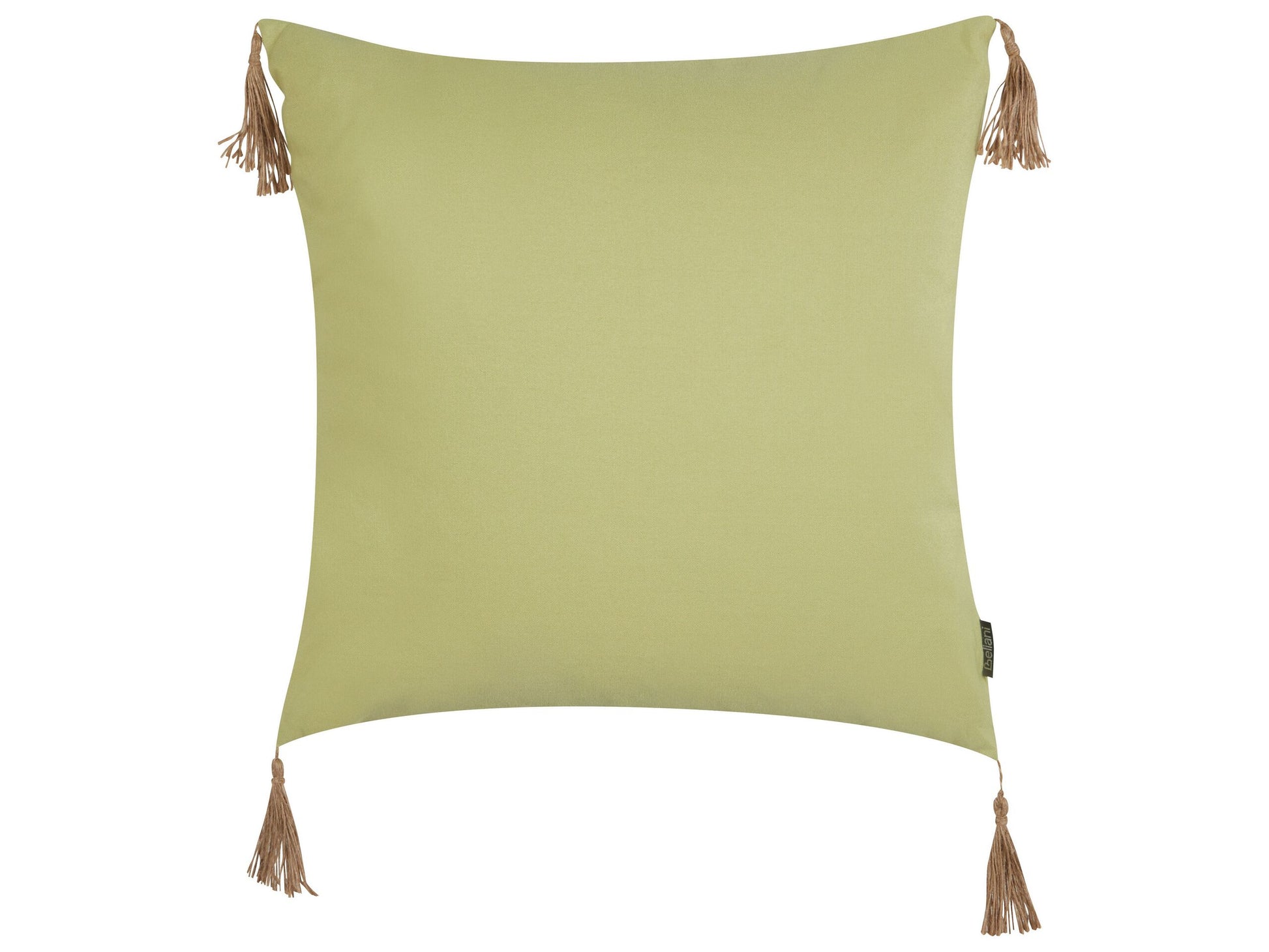 Frischen Sie Ihr Zuhause mit diesem charmanten Kissen mit dekorativen Quasten auf. Der abnehmbare Bezug ist mit strapazierfähigem, langlebigem Polyester gefüllt und fühlt sich angenehm an. Dieses Dekorationsstück eignet sich ideal zum Entspannen im Wohnzimmer oder als gemütliches Wohnaccessoire im Schlafzimmer. Vielseitig und stilvoll ergänzt es die verschiedensten Einrichtungsstile und bringt Komfort und Charme in jeden Raum.  Material: Polyester. Material Zusammensetzung: 100% Polyester Montage: Benötigt keine Montage Das Angebot beinhaltet: 1 x Zierkissen Höhe: 12 zusätzliche Information: Das Kissen ist vakuumverpackt. Nehmen Sie Ihr Kissen aus der Verpackung heraus und lassen Sie es 24 Stunden lang liegen, bis es seine volle Dichte erreicht. Gestalten: Quadratisch Breite: 45 Tiefe: 45 Art: Dekokissen Stil: Modern Allgemeine Farbe: Grün Schatten: Olivgrün Muster: Ohne Muster Hauptmaterial: Polyester Füllmaterial: Polyester