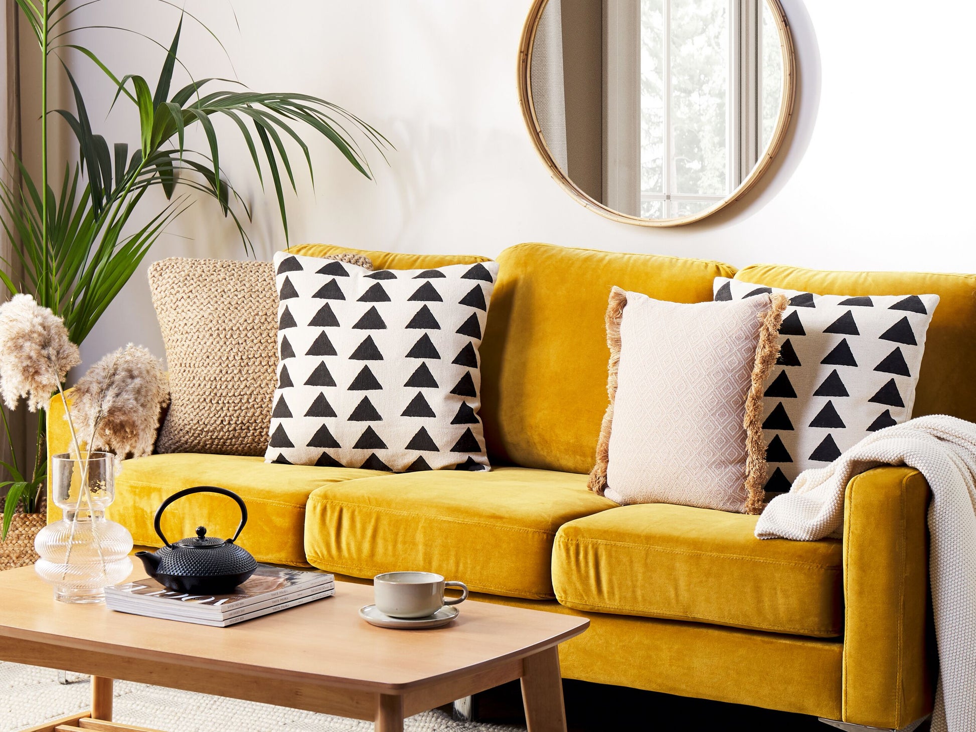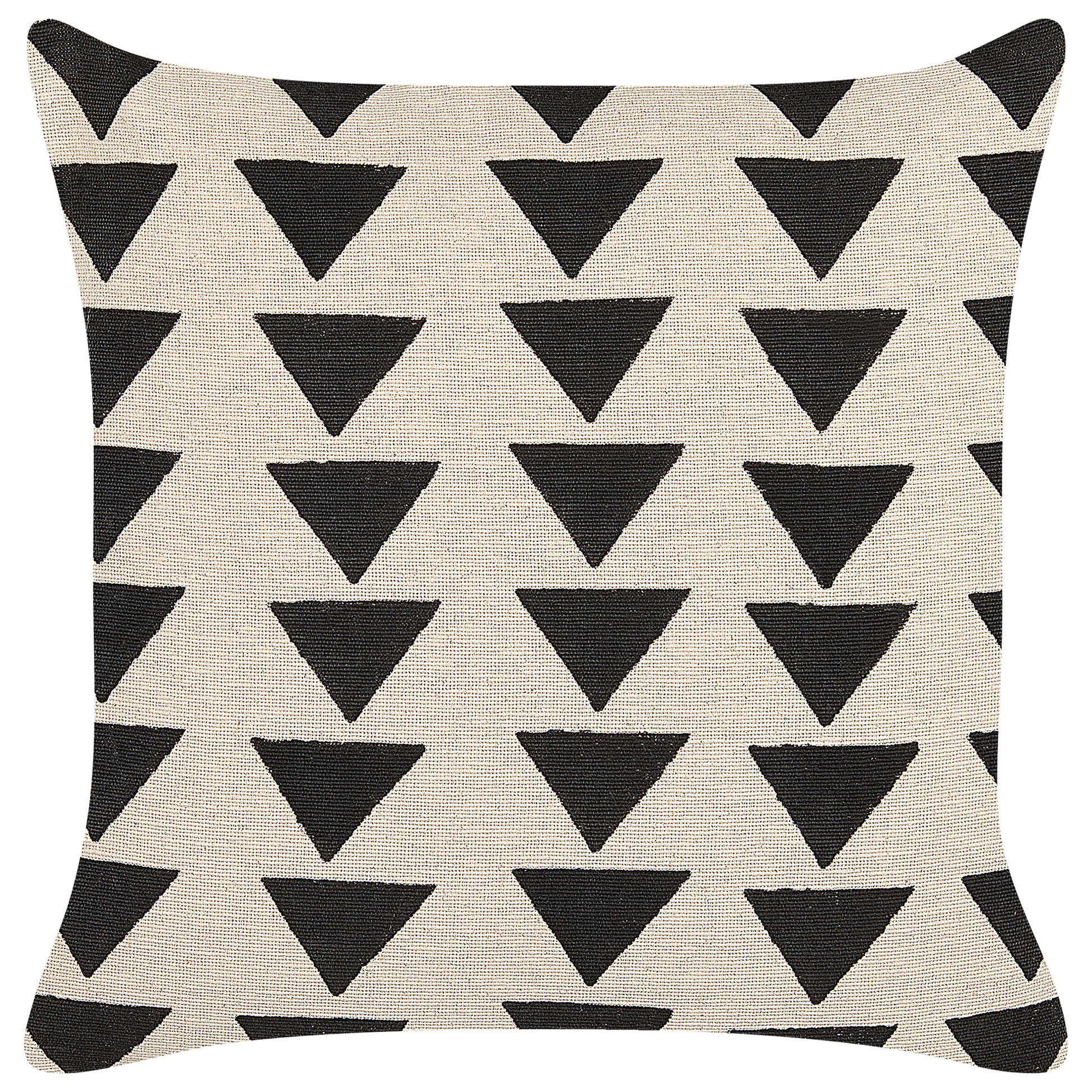 Dieses dekorative Kissen Set wird mit seiner klassichen Farbwahl jedem Raum einen gemütlichen Boho-Loook verleihen. Die abnehmbaren Bezüge sind aus qualitativer Baumwolle gefertigt und mit weichen Füllungen versehen. So sind die Sofakissen nicht nur besonders dick, sondern besitzen auch eine angeneme Haptik. Die Dreieckmuster sind von Hand per Blockdruck auf die Kissenbezüge aufgetragen worden, so ist jedes der Modelle etwas Besonderes. Die versteckten Reissverschlüsse erleichtern die Pflege der Kissenhüllen. Ob Sie das Set auf dem Bett, Hänge- oder Ohrensessel plazieren oder Sie Ihr Bett mit ihnen verschönern möchten, diese Stoffkissen werden Sie mit Sicherheit nicht enttäuschen. Material: Baumwolle. Material Zusammensetzung: 100% Baumwolle Montage: Benötigt keine Montage Das Angebot beinhaltet: 2 x Zierkissen Höhe: 10 zusätzliche Information: Das Kissen ist vakuumverpackt. Nehmen Sie Ihr Kissen aus der Verpackung heraus und lassen Sie es 24 Stunden lang liegen, bis es seine volle Dichte erreicht., Jeder Artikel ist ein handgefertigtes Unikat; Farbschattierung und Muster können daher vom Foto abweichen. Gestalten: Quadratisch Breite: 45 Tiefe: 45 Art: Dekokissen 2er Set Stil: Klassisch Allgemeine Farbe: Schwarz Schatten: Hellbeige Muster: Geometrisches Muster Hauptmaterial: Baumwolle Füllmaterial: Polyester