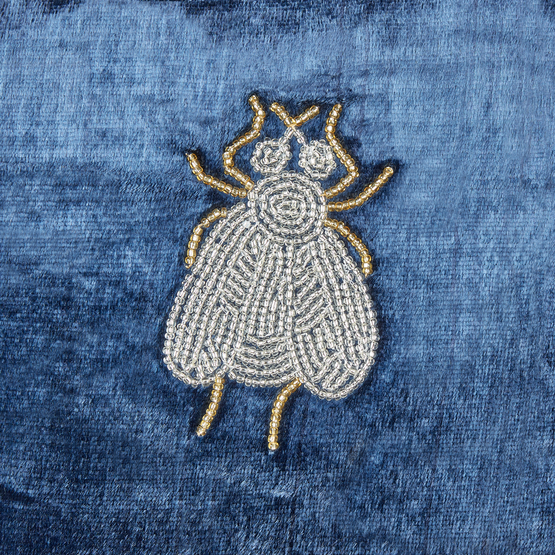 Verschönen Sie Ihr Wohn- oder Schlafzimmer mit diesen Kissen, die Ihr Zuhause auf besondere Weise aufwerten werden. Sie sind mit einem Fliegenmotiv versehen, das in jedem Raum ein wahrer Eyecatcher ist. Die marineblaue Farbe der Kissen macht sie zu einer grossartigen Ergänzung für verschiedene moderne Einrichtungsstile, und ihre abnehmbare Samtbezüge sind pflegeleicht und langlebig. Material: Samtstoff. Zusätzliches Material: Baumwolle. Montage: Benötigt keine Montage Das Angebot beinhaltet: 2 x Zierkissen Höhe: 10 zusätzliche Information: Das Kissen ist vakuumverpackt. Nehmen Sie Ihr Kissen aus der Verpackung heraus und lassen Sie es 24 Stunden lang liegen, bis es seine volle Dichte erreicht., Da jedes Produkt handgefertigt wird, kann es zu kleineren Abweichungen in der Farbe und der äusseren Struktur kommen. Diese Abweichungen stellen keinen Qualitätsmangel dar, sondern sind eine warentypische Eigenschaft., Bitte beachten Sie, dass Samtstoff unter verschiedenen Lichtverhältnissen eine andere Optik haben kann – das Material schimmert bei Tageslicht stärker und wirkt bei künstlicher Beleuchtung in Innenräumen eher gedämpft. Aufgrund der glatten, hochdichten Struktur des Gewebes kann sein Farbton auch variieren, wenn man mit der Hand in verschiedene Richtungen und Winkel über den Stoff fährt. Um den Farbton auszugleichen und Druckstellen zu vermeiden, sollte der Webstoff sanft mit einer offenen Handfläche in eine Richtung gestrichen, mit einem feuchten Tuch abgewischt oder einem Dampfbügeleisen gebügelt werden. Gestalten: Quadratisch Breite: 45 Tiefe: 45 Art: Dekokissen 2er Set Stil: Boho Allgemeine Farbe: Blau Schatten: Marineblau Muster: Tiermuster Hauptmaterial: Samtstoff Füllmaterial: Polyester