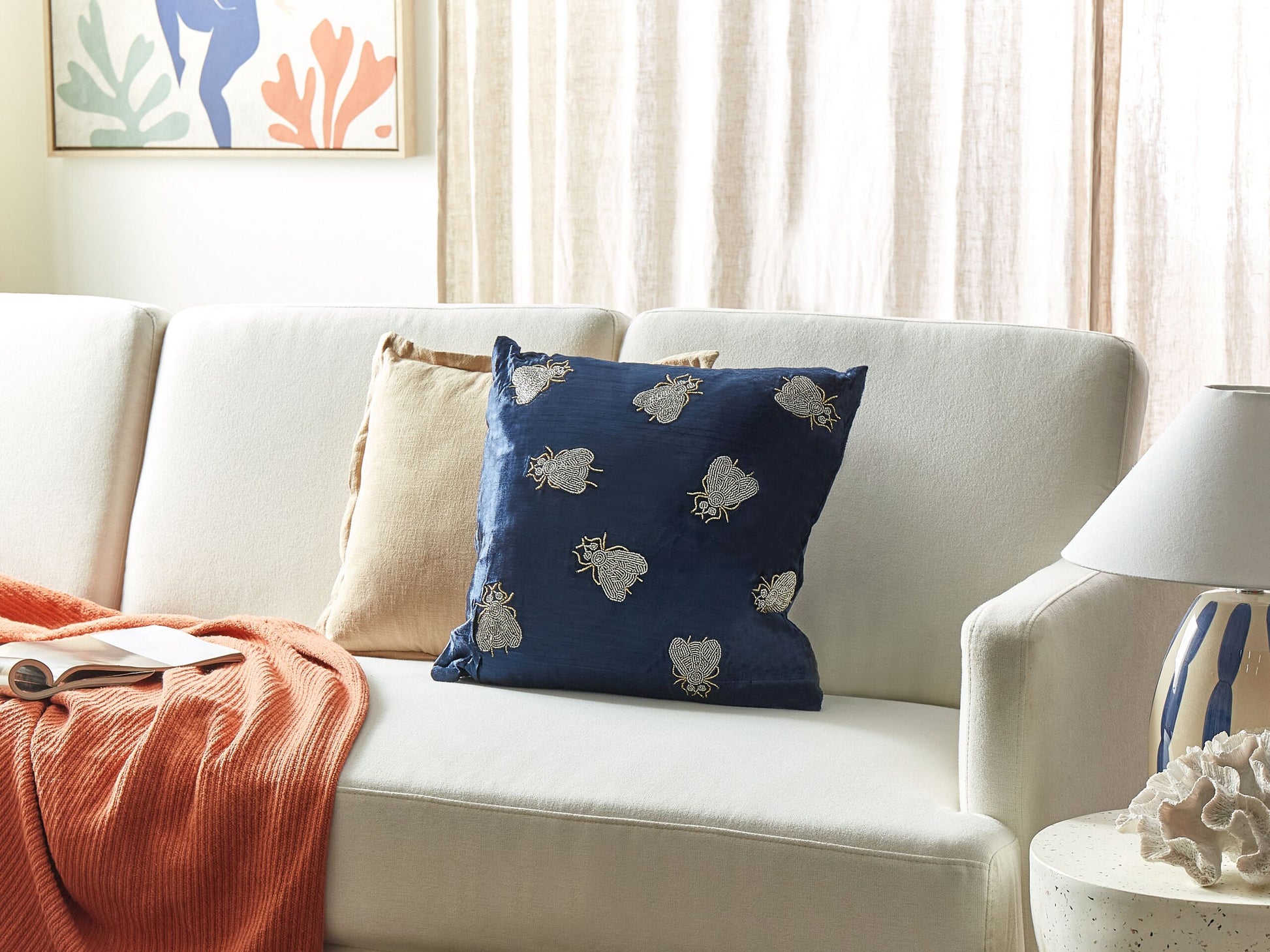 Dekokissen PENTAS Samtstoff 45 x 45 cm Marineblau Tiermuster