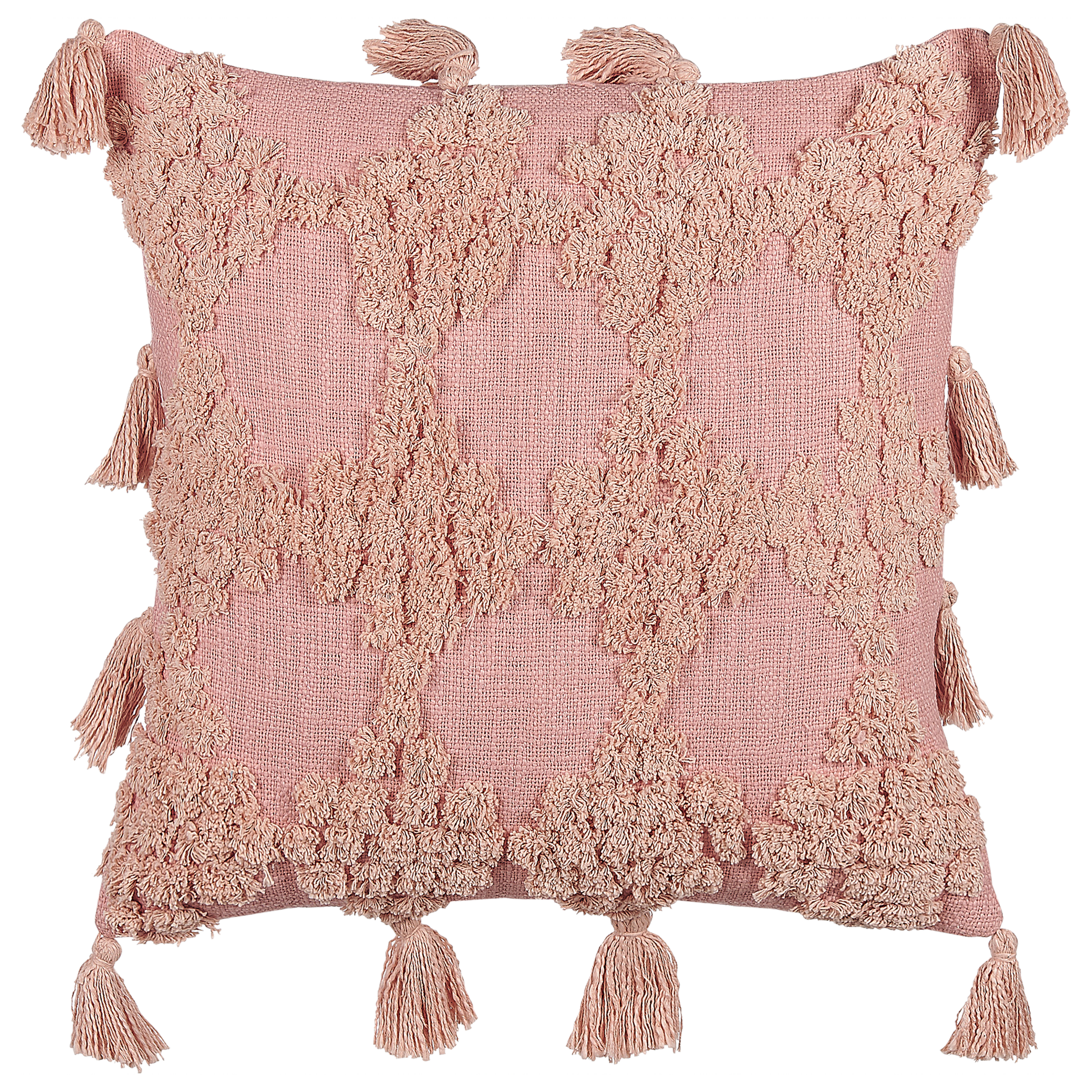 Beschreibung: Mit diesem dekorativen Kissen Set verleihen Sie Ihrem Wohn- oder Schlafzimmer den letzten Schliff. Die Kissenhüllen besitzen auffällige, geometrische Muster sowie mehrere Quasten aus weicher Baumwolle. Dank den qualitativen Materialien sowie den besonderen Strukturierungen fühlen sich die Stoffkissen angenehm an. Zudem sind die Sofakissen mit weichen Füllungen und Reissverschlüssen für eine bequeme Nutzung ausgestattet. Material: Baumwolle. Material Zusammensetzung: 100% Baumwolle Montage: Benötigt keine Montage Das Angebot beinhaltet: 2 x Zierkissen Höhe: 10 zusätzliche Information: Das Kissen ist vakuumverpackt. Nehmen Sie Ihr Kissen aus der Verpackung heraus und lassen Sie es 24 Stunden lang liegen, bis es seine volle Dichte erreicht. Gestalten: Quadratisch Breite: 45 Tiefe: 45 Art: Dekokissen 2er Set Stil: Klassisch Allgemeine Farbe: Rosa Muster: Geometrisches Muster Hauptmaterial: Baumwolle Füllmaterial: Polyester