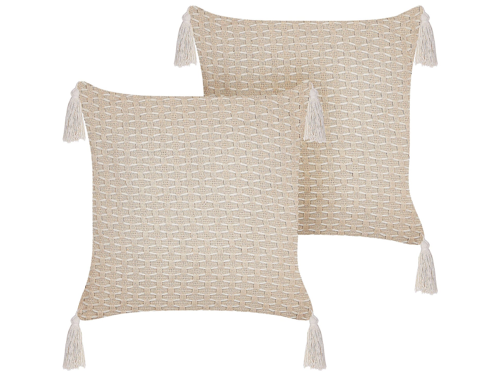 Dekokissen 2er Set HAKONE 42 x 42 cm Hellbeige Geometrisches Muster