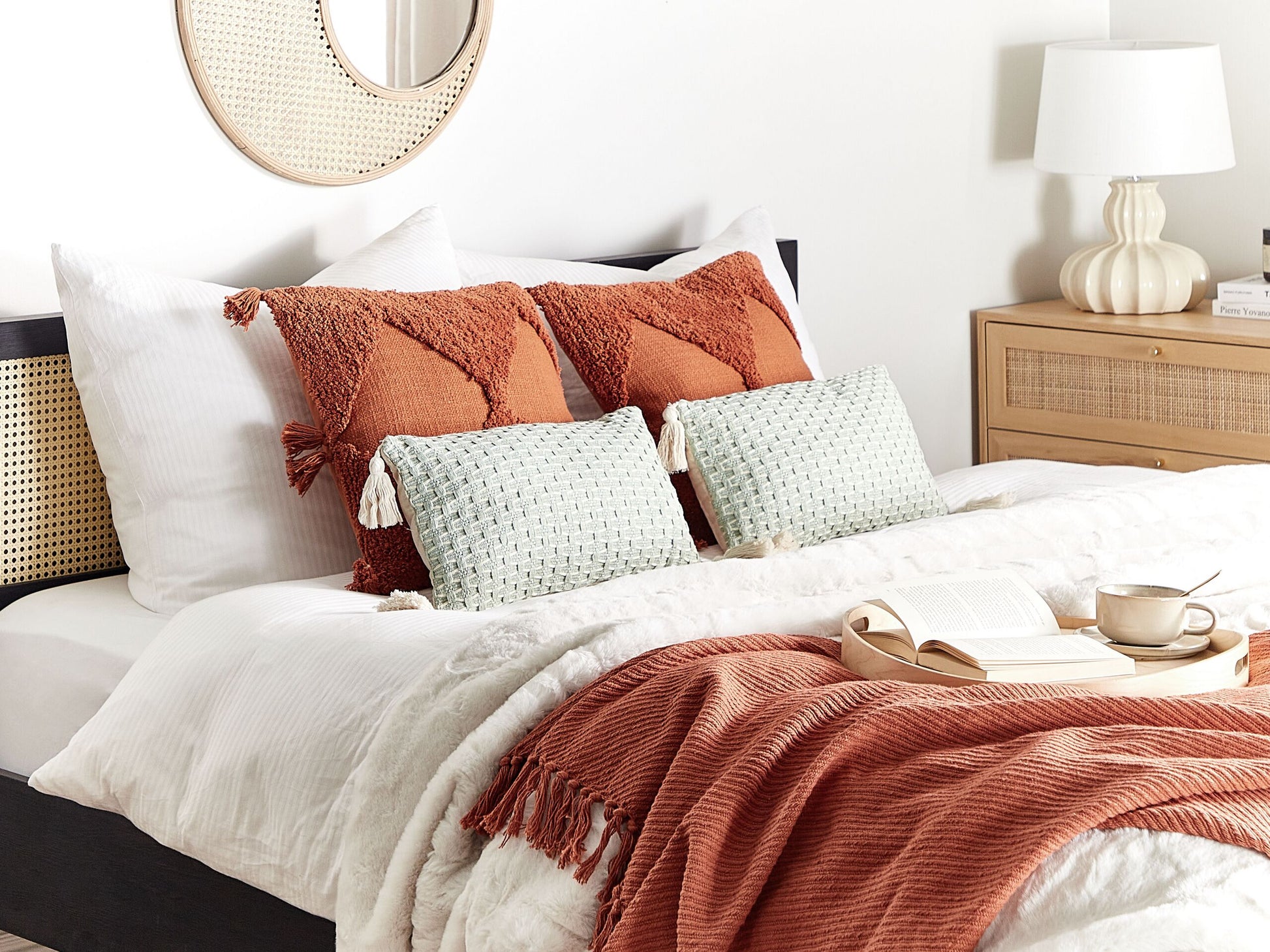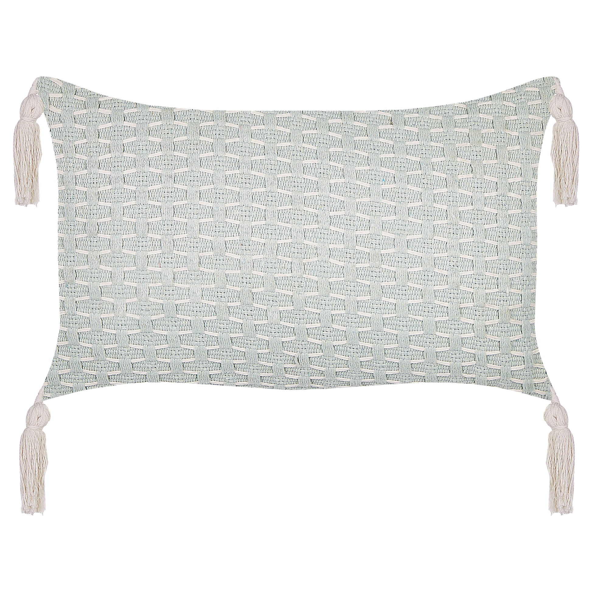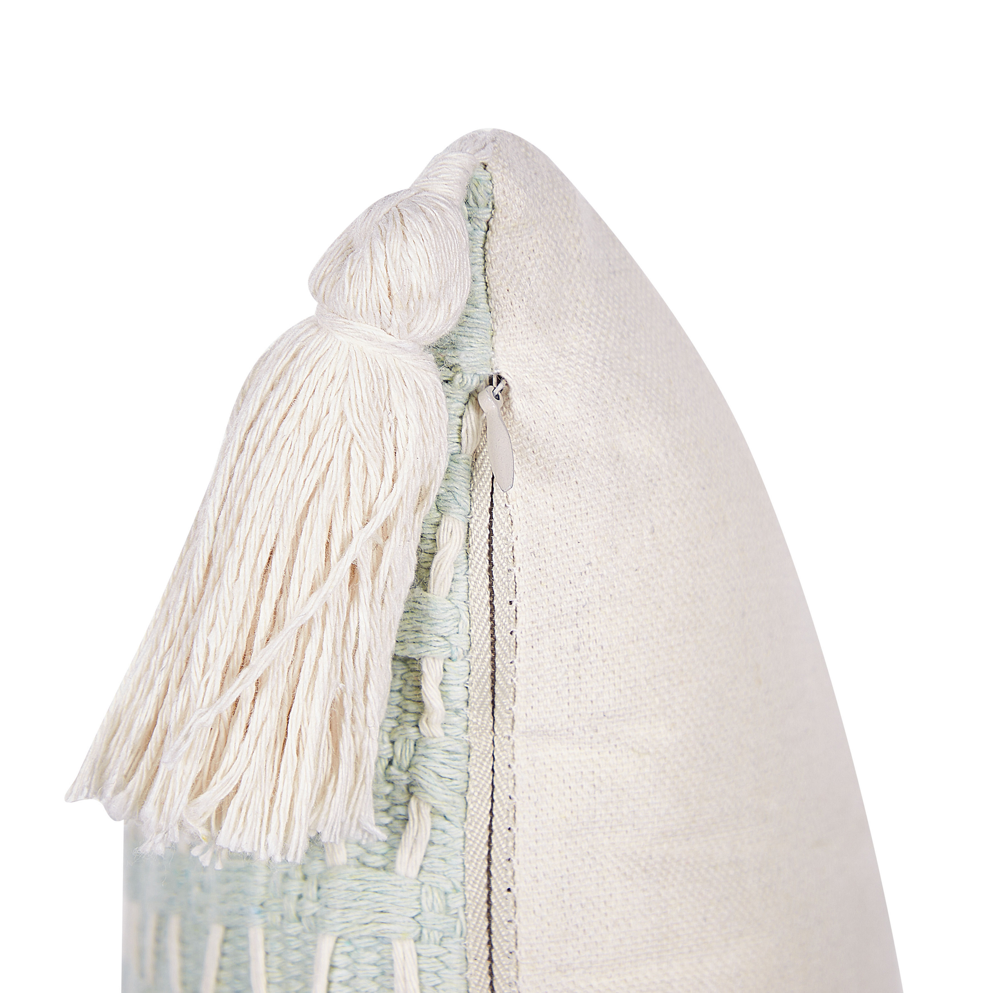 Mit diesem dekorativen Kissenset können Sie Ihr Wohnzimmer auffrischen und ihm eine gemütliche Note verleihen. Es besteht aus abnehmbaren Bezügen und hochwertigen Füllungen, die für einen dauerhaften Gebrauch sorgen. Jedes Kissen ist mit einem geometrischen Muster und Quasten versehen, die sowohl moderne als auch Boho-Einrichtungen und traditionelle Räume aufwerten. Material: Polyester. Zusätzliches Material: Baumwolle. Montage: Benötigt keine Montage Das Angebot beinhaltet: 2 x Zierkissen Höhe: 10 zusätzliche Information: Das Kissen ist vakuumverpackt. Nehmen Sie Ihr Kissen aus der Verpackung heraus und lassen Sie es 24 Stunden lang liegen, bis es seine volle Dichte erreicht. Gestalten: Rechteckig Breite: 45 Tiefe: 25 Art: Dekokissen 2er Set Stil: Boho Allgemeine Farbe: Grün Schatten: Mintgrün Muster: Geometrisches Muster Hauptmaterial: Polyester Füllmaterial: Polyester