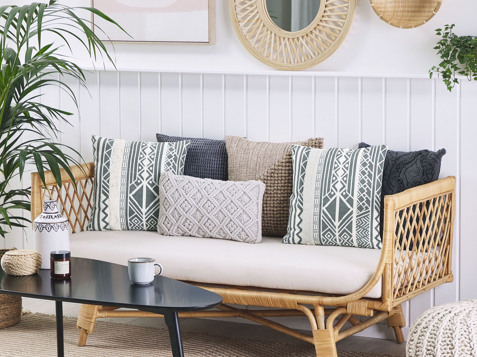 Beschreibung: Mit Hilfe von dekorativen Kissen lässt sich das Wohnambiente ohne grossen Aufwand verändern. Dieses Set besticht durch sein originelles Design mit verschiedenen geometrischen Mustern und schmalen Zierfransen. Die Bezüge sind aus strapazierfähigem Polyester- und Baumwollgewebe gefertigt und können zur Reinigung abgezogen werden. Material: Polyester. Material Zusammensetzung: 50 % Baumwolle, 50 % Polyester Montage: Benötigt keine Montage Das Angebot beinhaltet: 2 x Zierkissen Höhe: 12 zusätzliche Information: Das Kissen ist vakuumverpackt. Nehmen Sie Ihr Kissen aus der Verpackung heraus und lassen Sie es 24 Stunden lang liegen, bis es seine volle Dichte erreicht. Gestalten: Quadratisch Breite: 45 Tiefe: 45 Art: Dekokissen 2er Set Stil: Boho Allgemeine Farbe: Grau Muster: Geometrisches Muster Hauptmaterial: Polyester Füllmaterial: Polyester