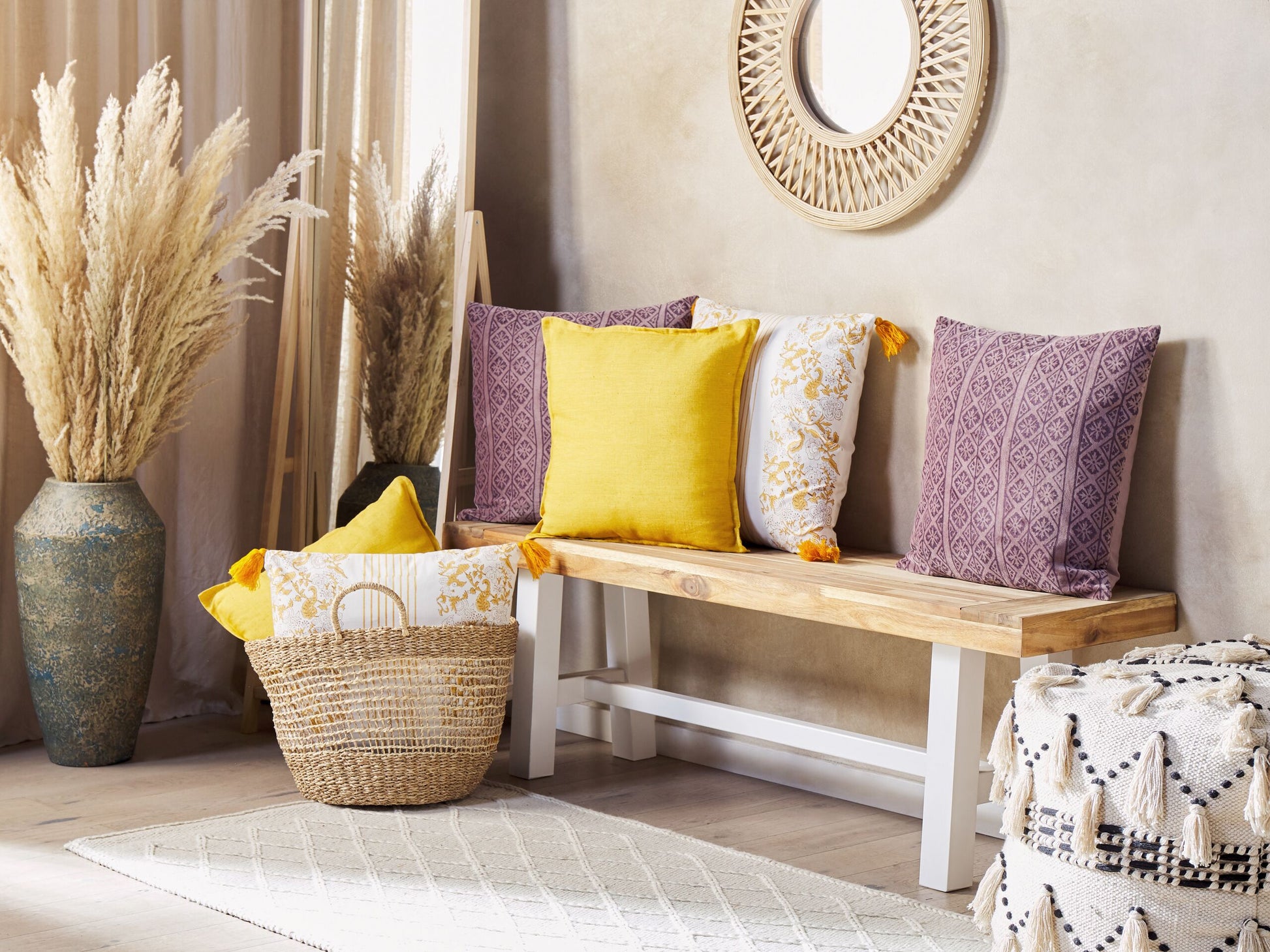 Mit diesem Stoffkssen werden Sie Ihre Einrichtung sicherlich aufwerten können. Plazieren Sie das Kissen auf dem Sofa, Sessel oder Bett und kombinieren Sie es mit anderen samtigen Accessoires. Die Vorderseite des Sofakissens ist aus hochwertigem Samt gefertigt und die Rückseite der Kissenhülle besteht aus strapazierfähiger Baumwolle. Die Materialien fühlen sich nicht nur angenehm an, sondern sind auch leicht zu reinigen, da der Bezug mit einem Reissverschluss auf der Rückseite ausgestattet ist. Das auffällige, geometrische Muster ist einzigartig, da es in einem Blockdruckverfahren hergestellt wurde. Material: Samtstoff. Zusätzliches Material: Baumwolle. Material Zusammensetzung: 100% Baumwolle Montage: Benötigt keine Montage Das Angebot beinhaltet: 1 x Zierkissen Höhe: 10 zusätzliche Information: Das Kissen ist vakuumverpackt. Nehmen Sie Ihr Kissen aus der Verpackung heraus und lassen Sie es 24 Stunden lang liegen, bis es seine volle Dichte erreicht., Bitte beachten Sie, dass Samtstoff unter verschiedenen Lichtverhältnissen eine andere Optik haben kann – das Material schimmert bei Tageslicht stärker und wirkt bei künstlicher Beleuchtung in Innenräumen eher gedämpft. Aufgrund der glatten, hochdichten Struktur des Gewebes kann sein Farbton auch variieren, wenn man mit der Hand in verschiedene Richtungen und Winkel über den Stoff fährt. Um den Farbton auszugleichen und Druckstellen zu vermeiden, sollte der Webstoff sanft mit einer offenen Handfläche in eine Richtung gestrichen, mit einem feuchten Tuch abgewischt oder einem Dampfbügeleisen gebügelt werden. Gestalten: Quadratisch Breite: 45 Tiefe: 45 Art: Dekokissen Stil: Modern Allgemeine Farbe: Rosa Muster: Geometrisches Muster Hauptmaterial: Samtstoff Füllmaterial: Polyester