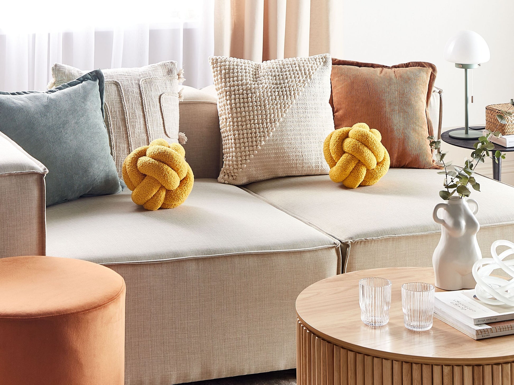 Dieses wunderschöne Knotenset aus 2 Kissen bringt Gemütlichkeit in Ihren Wohnbereich. Sie sind aus weichem Polyester-Boucle-Stoff gefertigt und passen perfekt zu jedem Bett, Stuhl oder Sofa. Diese einzigartige, stilvolle Form in einem klassischen Farbton passt gut zu skandinavischen, Boho oder sogar Retro-Einrichtungen. Material: Bouclé. Material Zusammensetzung: 100% Polyester Montage: Benötigt keine Montage Das Angebot beinhaltet: 2 x Zierkissen Höhe: 19 zusätzliche Information: Der Kissenbezug ist ein wesentlicher Bestandteil des Kissens., Das Kissen ist vakuumverpackt. Nehmen Sie Ihr Kissen aus der Verpackung heraus und lassen Sie es 24 Stunden lang liegen, bis es seine volle Dichte erreicht., Da jedes Produkt handgefertigt wird, kann es zu kleineren Abweichungen in der Farbe und der äusseren Struktur kommen. Diese Abweichungen stellen keinen Qualitätsmangel dar, sondern sind eine warentypische Eigenschaft. Gestalten: Unregelmässig Breite: 19 Tiefe: 19 Art: Dekokissen 2er Set Stil: Boho Allgemeine Farbe: Gelb Schatten: Senfgelb Muster: Ohne Muster Hauptmaterial: Bouclé Füllmaterial: Schaumstoff