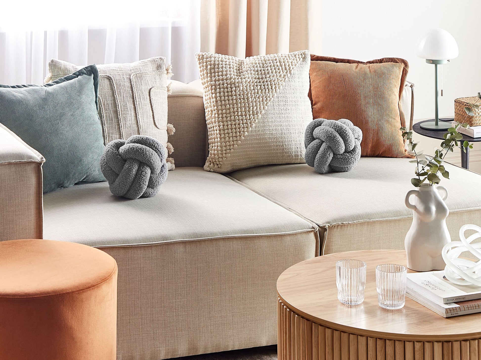 Beschreibung: Dieses wunderschöne Knotenkissen bringt Gemütlichkeit in Ihren Wohnbereich. Das Kissen aus weichem Polyester-Boucle-Stoff ist die perfekte Ergänzung für jedes Bett, jeden Sessel und jedes Sofa. Diese einzigartige, stilvolle Form in einem klassischen Farbton passt gut zu skandinavischen, Boho oder sogar Retro-Einrichtungen. Material: Bouclé. Material Zusammensetzung: 100% Polyester Montage: Benötigt keine Montage Das Angebot beinhaltet: 1 x Zierkissen Höhe: 19 zusätzliche Information: Der Kissenbezug ist ein wesentlicher Bestandteil des Kissens., Das Kissen ist vakuumverpackt. Nehmen Sie Ihr Kissen aus der Verpackung heraus und lassen Sie es 24 Stunden lang liegen, bis es seine volle Dichte erreicht., Da jedes Produkt handgefertigt wird, kann es zu kleineren Abweichungen in der Farbe und der äusseren Struktur kommen. Diese Abweichungen stellen keinen Qualitätsmangel dar, sondern sind eine warentypische Eigenschaft. Gestalten: Unregelmässig Breite: 19 Tiefe: 19 Art: Dekokissen Stil: Boho Allgemeine Farbe: Grau Muster: Ohne Muster Hauptmaterial: Bouclé Füllmaterial: Schaumstoff