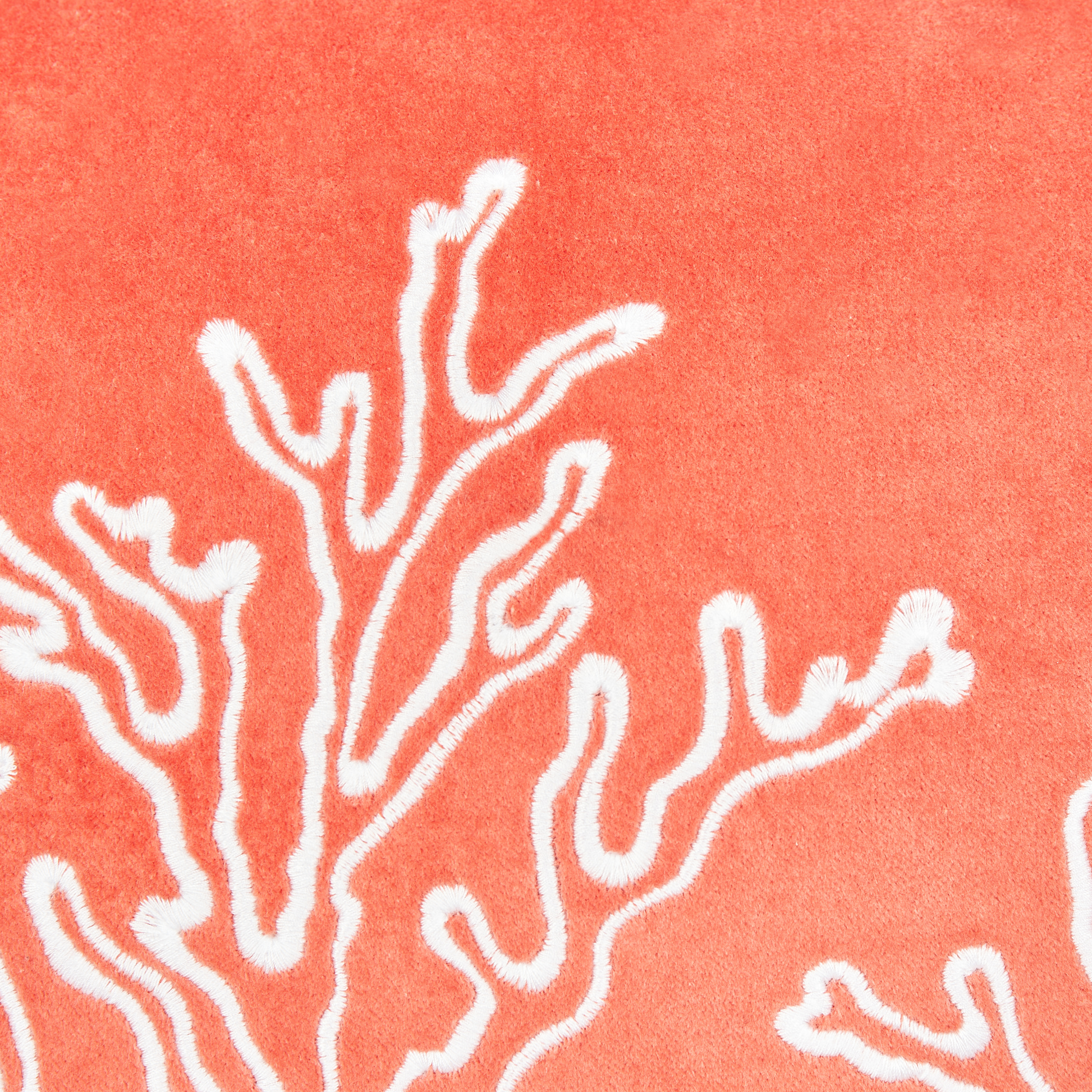 Dekokissen NORI Samtstoff 45 x 45 cm Korallenrot Pflanzenmuster