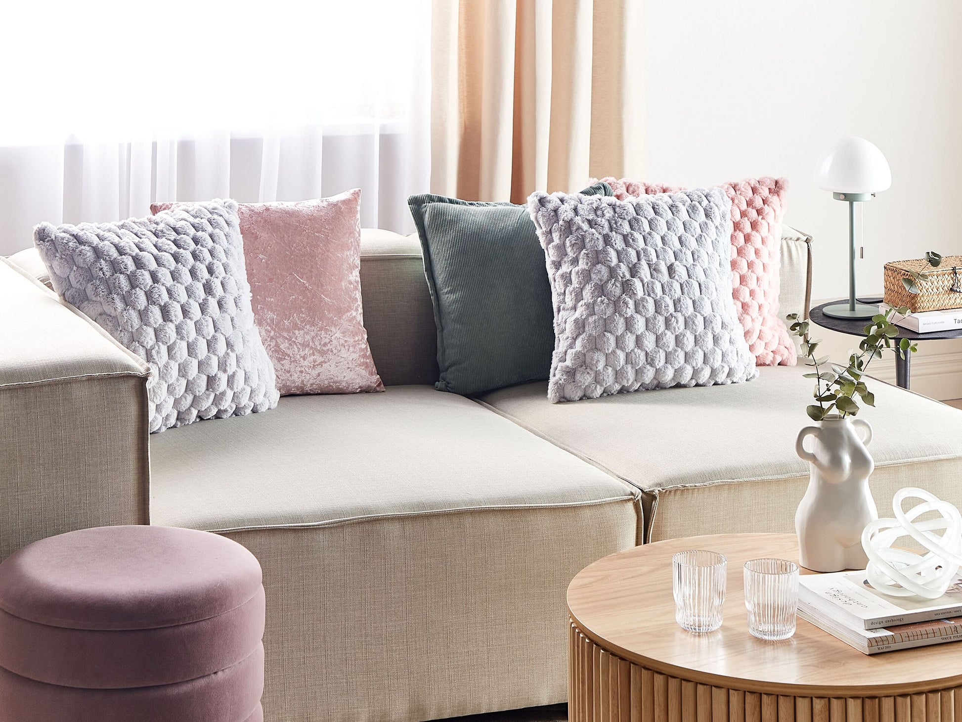 Bringen Sie mit diesem Kissenset zusätzliche Gemütlichkeit und Komfort in Ihren Wohnbereich. Die Vorderseite besteht aus flauschigem Kunstfell mit Wabenmuster, während die Rückseite eine elegante einfarbige und samtige Struktur aufweist. Dank der weichen Füllung eignen sich die Kissen perfekt für ein Nachmittagsschläfchen oder zum Entspannen auf dem Sofa. Material: Webpelz. Zusätzliches Material: Samtstoff. Material Zusammensetzung: 100% Polyester Montage: Benötigt keine Montage Das Angebot beinhaltet: 2 x Zierkissen Höhe: 10 zusätzliche Information: Das Kissen ist vakuumverpackt. Nehmen Sie Ihr Kissen aus der Verpackung heraus und lassen Sie es 24 Stunden lang liegen, bis es seine volle Dichte erreicht., Bitte beachten Sie, dass Samtstoff unter verschiedenen Lichtverhältnissen eine andere Optik haben kann – das Material schimmert bei Tageslicht stärker und wirkt bei künstlicher Beleuchtung in Innenräumen eher gedämpft. Aufgrund der glatten, hochdichten Struktur des Gewebes kann sein Farbton auch variieren, wenn man mit der Hand in verschiedene Richtungen und Winkel über den Stoff fährt. Um den Farbton auszugleichen und Druckstellen zu vermeiden, sollte der Webstoff sanft mit einer offenen Handfläche in eine Richtung gestrichen, mit einem feuchten Tuch abgewischt oder einem Dampfbügeleisen gebügelt werden. Gestalten: Quadratisch Breite: 43 Tiefe: 43 Art: Dekokissen 2er Set Stil: Boho Allgemeine Farbe: Grau Schatten: Hellgrau Muster: Geometrisches Muster Hauptmaterial: Webpelz Füllmaterial: Polyester