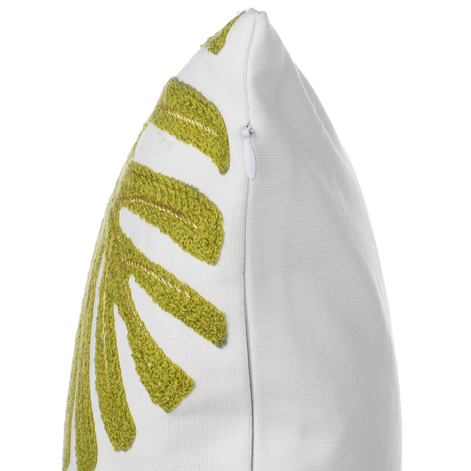 Dieses weiche Zierkissen-Set bringt mehr Komfort auf Ihre Sitzmöbel und zaubert mit seinem grünen Palmblatt-Print einen neuen Look auf sie. Beide Sofakissen sind mit abnehmbaren Baumwollbezügen und dicken Polyester-Füllungen ausgestattet. Dank der verwendeten Materialien besitzen die Kissenhüllen nicht nur eine angenehme Haptik, sie sind auch pflegeleicht. Material: Baumwolle. Material Zusammensetzung: 100% Baumwolle Montage: Benötigt keine Montage Das Angebot beinhaltet: 2 x Zierkissen Höhe: 12 zusätzliche Information: Das Kissen ist vakuumverpackt. Nehmen Sie Ihr Kissen aus der Verpackung heraus und lassen Sie es 24 Stunden lang liegen, bis es seine volle Dichte erreicht. Gestalten: Quadratisch Breite: 45 Tiefe: 45 Art: Dekokissen 2er Set Stil: Modern Allgemeine Farbe: Grün Schatten: Dunkelgrün Muster: Pflanzenmuster Hauptmaterial: Baumwolle Füllmaterial: Polyester