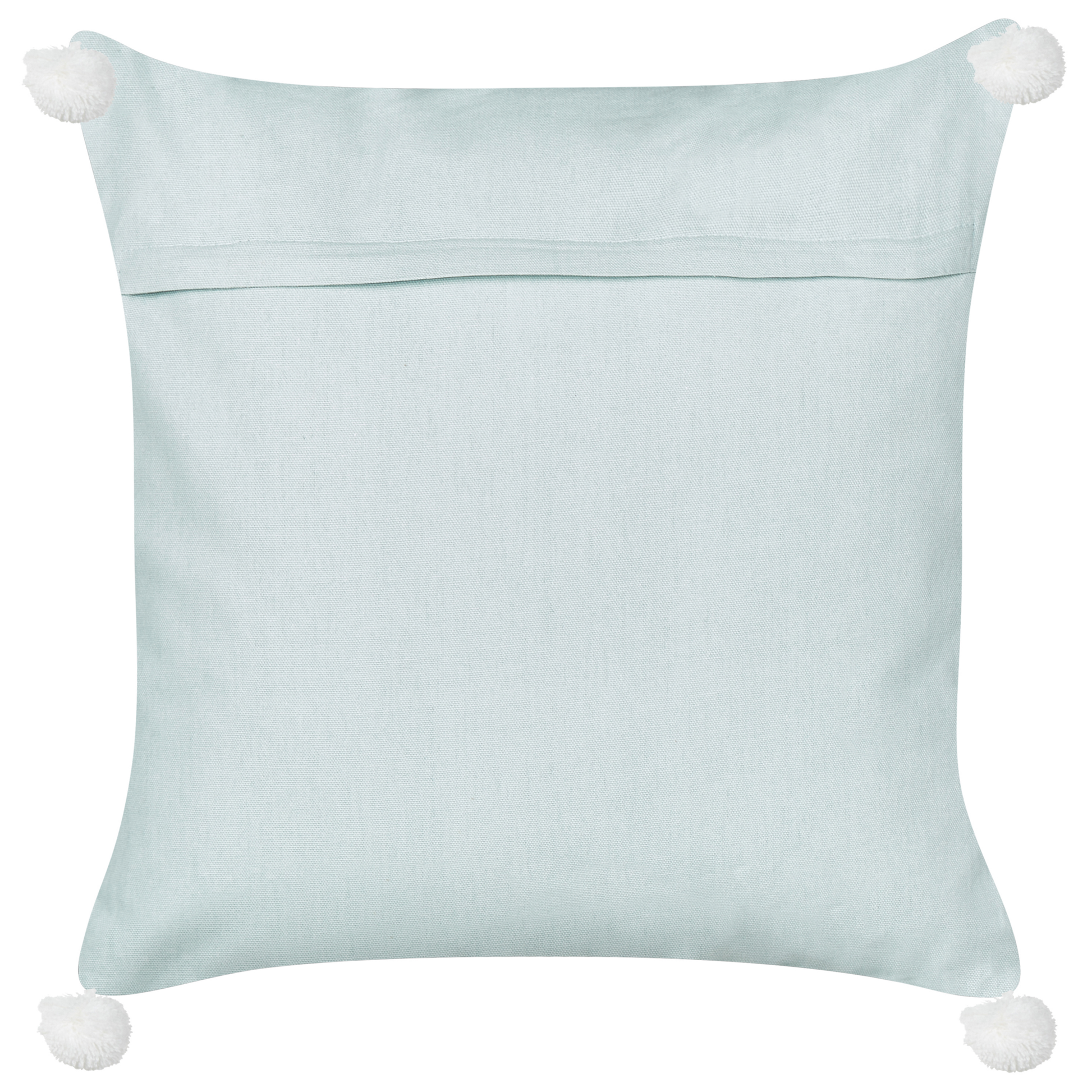 Mit diesem weichen Samtkissen können Sie nicht nur Ihr Bett oder Sofa bereichern, sondern auch ein angenehmes Ambiente in Ihren vier Wänden schaffen. Die Kissen-Vorderseite besteht aus geschmeidigem Baumwollsamt und ist mit einer weissen Stickerei versehen. Die Kissen-Rückseite ist aus weicher Baumwolle in einer wunderschönen Leinenoptik gefertigt. Durch die weissen Bommeln wird die hochwertige Verarbeitung und der kuschelige Look des Dekokissens hervorgehoben. Der abnehmbare Bezug erleichtert die tägliche Pflege, während das moderne Muschel-Design perfekt mit jeder Einrichtung harmoniert.  Material: Samtstoff. Material Zusammensetzung: 100% Baumwolle Montage: Benötigt keine Montage Das Angebot beinhaltet: 1 x Zierkissen Höhe: 10 zusätzliche Information: Das Kissen ist vakuumverpackt. Nehmen Sie Ihr Kissen aus der Verpackung heraus und lassen Sie es 24 Stunden lang liegen, bis es seine volle Dichte erreicht., Bitte beachten Sie, dass Samtstoff unter verschiedenen Lichtverhältnissen eine andere Optik haben kann – das Material schimmert bei Tageslicht stärker und wirkt bei künstlicher Beleuchtung in Innenräumen eher gedämpft. Aufgrund der glatten, hochdichten Struktur des Gewebes kann sein Farbton auch variieren, wenn man mit der Hand in verschiedene Richtungen und Winkel über den Stoff fährt. Um den Farbton auszugleichen und Druckstellen zu vermeiden, sollte der Webstoff sanft mit einer offenen Handfläche in eine Richtung gestrichen, mit einem feuchten Tuch abgewischt oder einem Dampfbügeleisen gebügelt werden. Gestalten: Quadratisch Breite: 45 Tiefe: 45 Art: Dekokissen Stil: Modern Allgemeine Farbe: Blau Schatten: Hellblau Muster: Abstraktes Muster Hauptmaterial: Samtstoff Füllmaterial: Polyester
