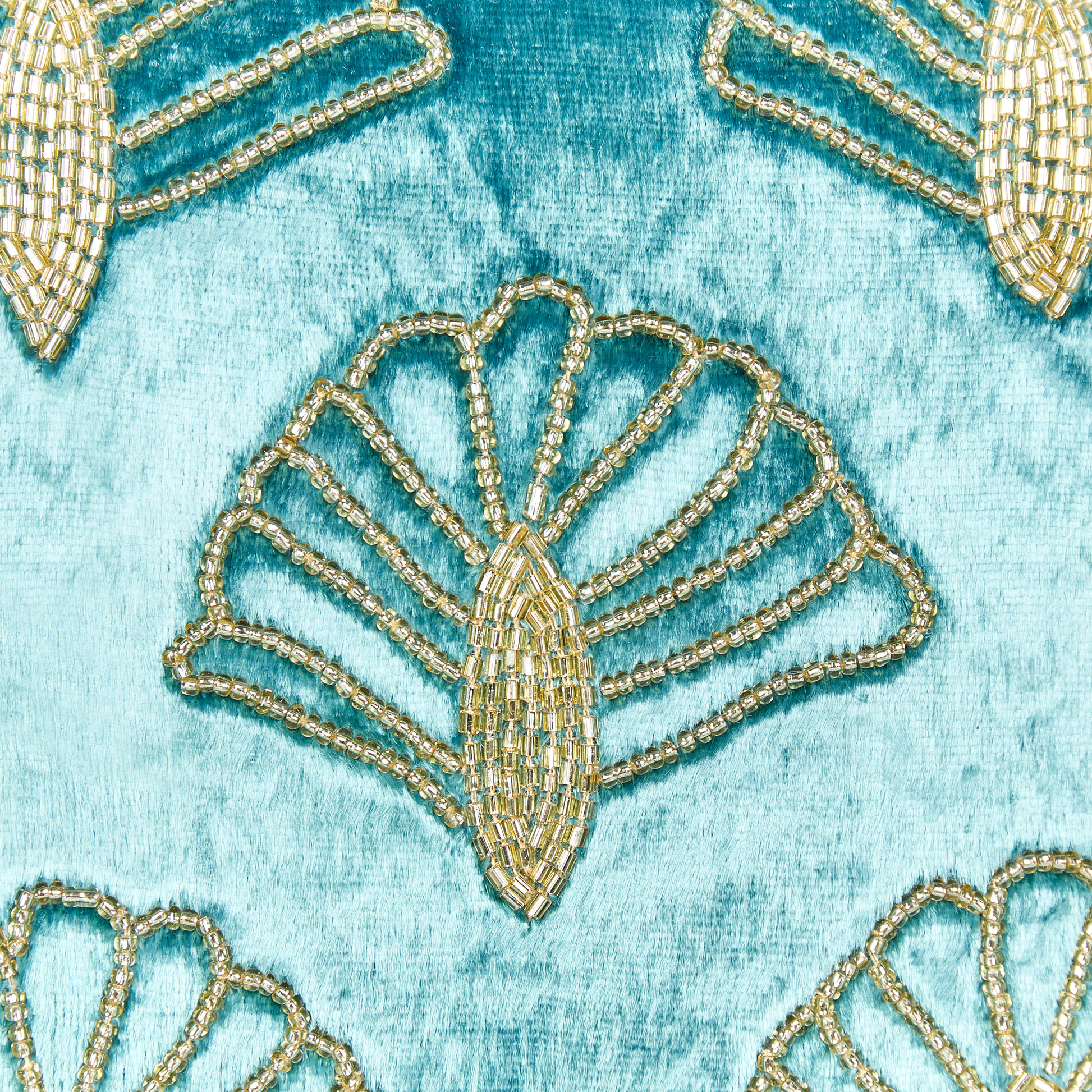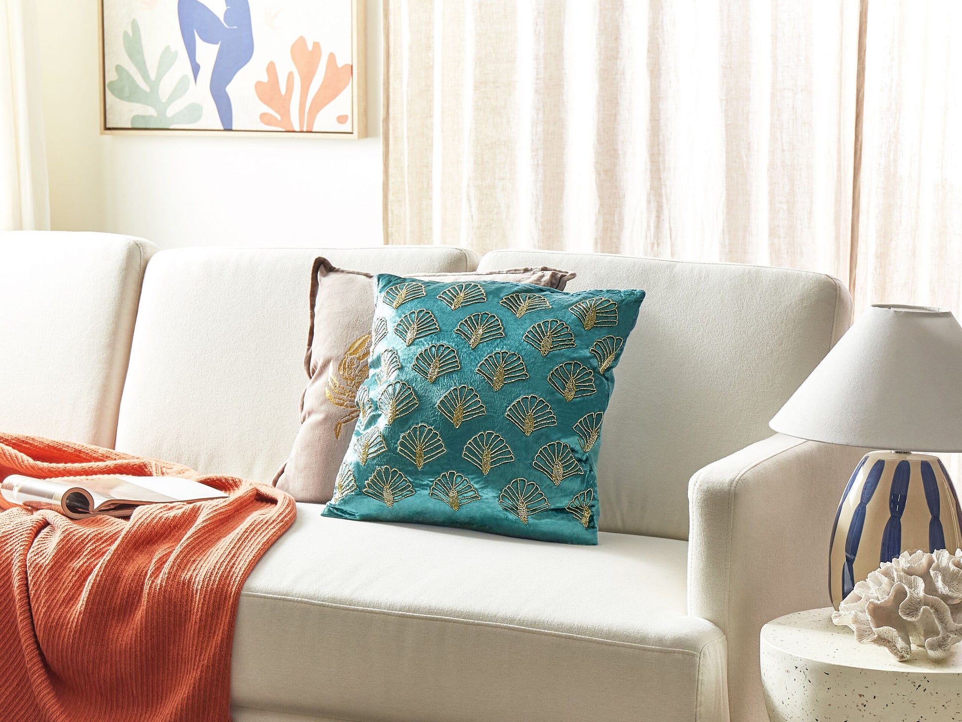 Dekokissen Muschelmuster Samtstoff türkis / gold 45 x 45 cm PANDOREA