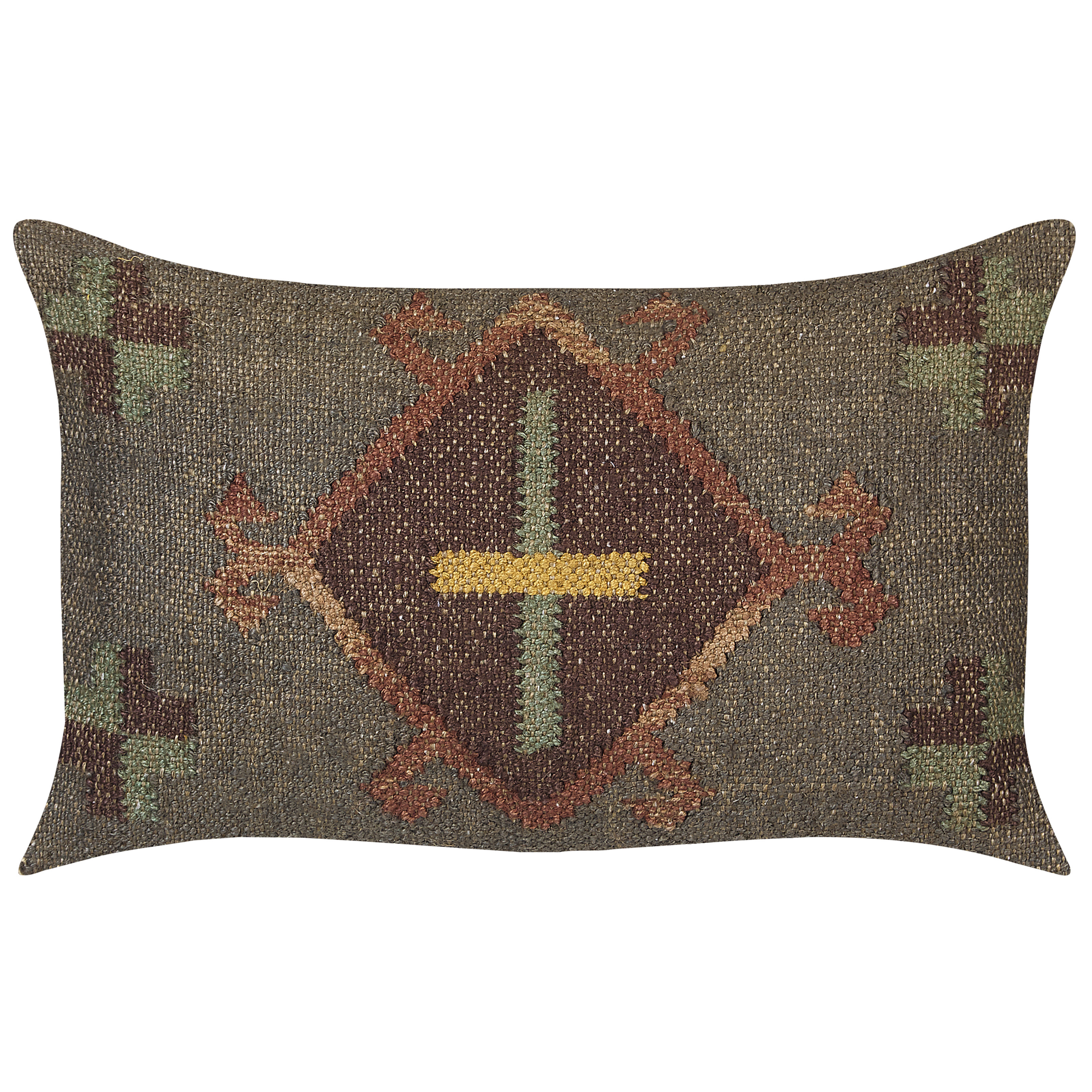 Hergestellt mit der traditionellen indischen Panja-Webtechnik, ist dieses Streukissen ein aussergewöhnliches Kunstwerk, sorgfältig gewebt, um aus jedes Stück ein Unikat zu machen. Die starke Mischung aus Jute und Wolle verleiht dem Bezug und der dicken Polyesterfüllung Form. Das orientalische Muster in einer verwaschenen, mehrfarbigen Palette macht es zu einem passenden Stück für Interieurs im Boho und Vintage-Stil. Perfekt als dekorativer Akzent im natürlichen Stil auf einem Sofa oder Bett. Material: Jute. Zusätzliches Material: Wolle, Baumwolle. Montage: Benötigt keine Montage Das Angebot beinhaltet: 2 x Zierkissen Höhe: 10 zusätzliche Information: Da jedes Produkt handgefertigt wird, kann es zu kleineren Abweichungen in der Farbe und der äusseren Struktur kommen. Diese Abweichungen stellen keinen Qualitätsmangel dar, sondern sind eine warentypische Eigenschaft. Gestalten: Rechteckig Breite: 30 Tiefe: 50 Art: Dekokissen 2er Set Stil: Retro Allgemeine Farbe: Grün Schatten: Dunkelgrün Muster: Orientalisches Muster Hauptmaterial: Jute Füllmaterial: Polyester